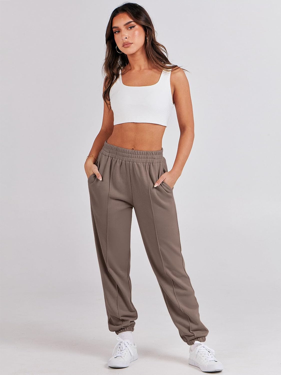 imageANRABESS Womens Sweatpants Baggy Casual High Waisted Workout Athletic Cinch Bottom Joggers PantsTaupe