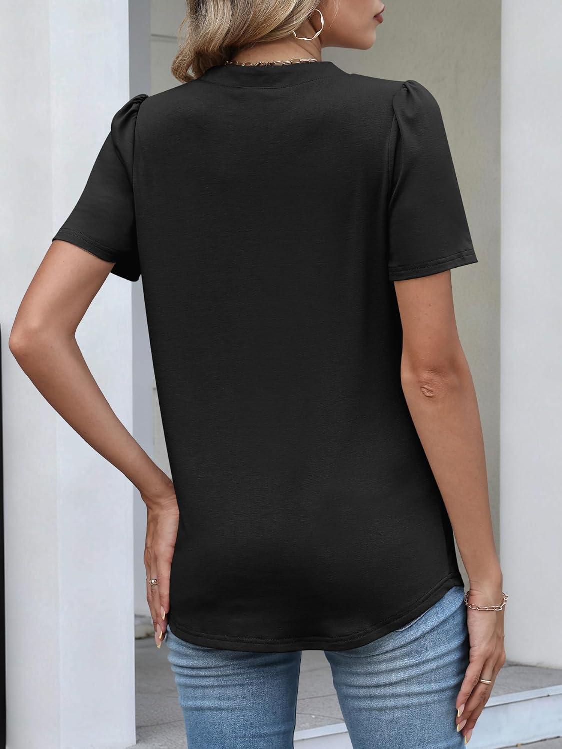 ANRABESS Womens Tops Business Casual 2026 Spring Short Sleeve Henley V Neck Shirts Dressy Work Blouse Summer Trendy Clothing(Black)