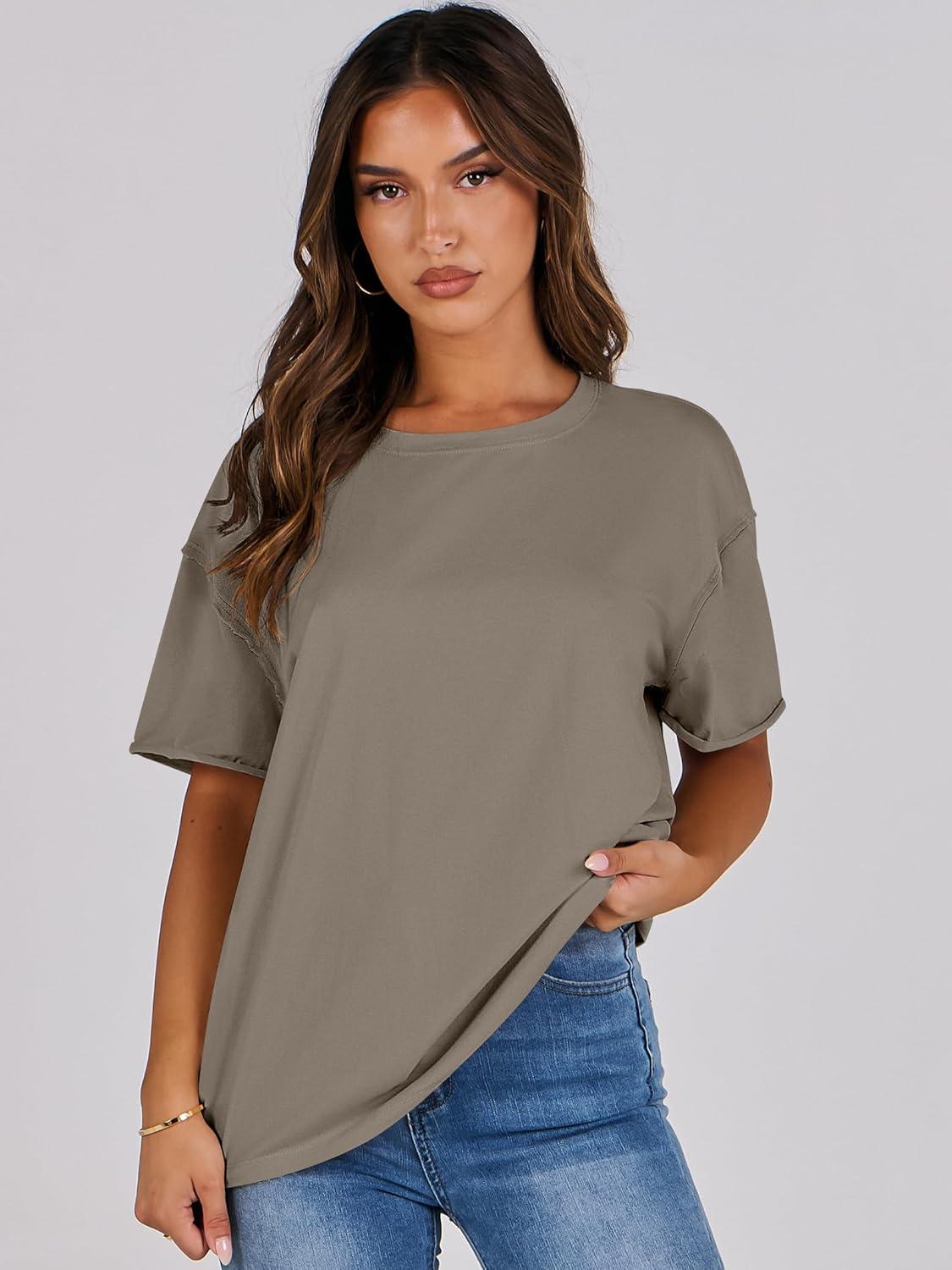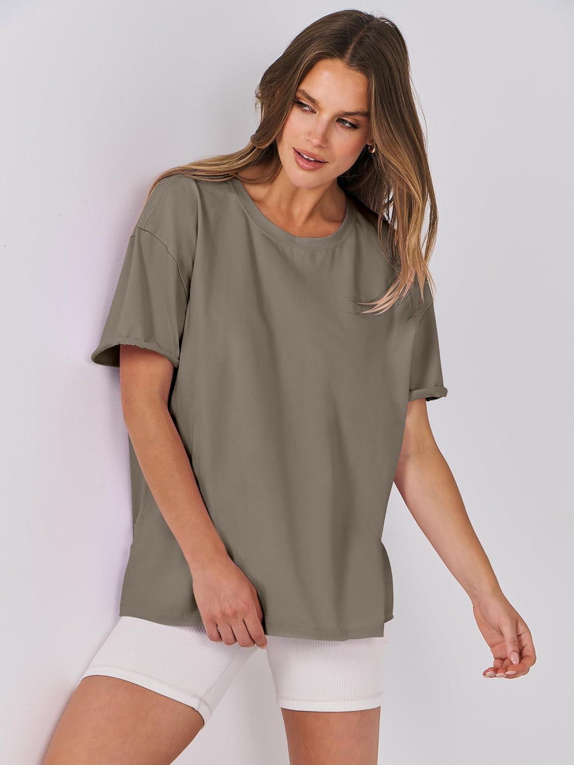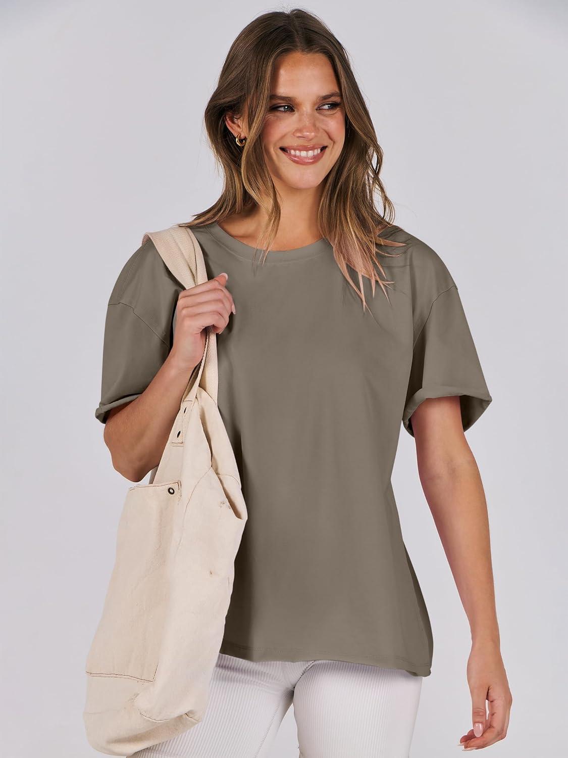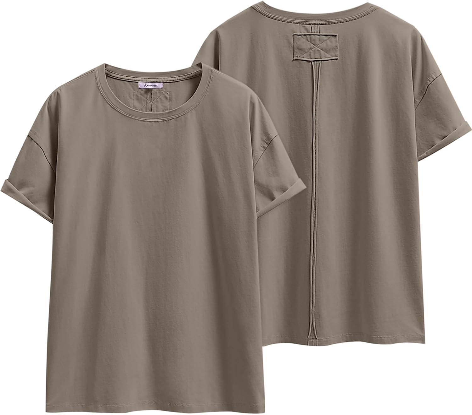 ANRABESS Womens Tops Oversized T Shirts Loose Fit Short Sleeve Crewneck Summer Casual 2025 Trendy Boxy Tee Blouse(Deep Khaki)