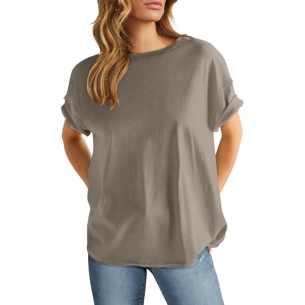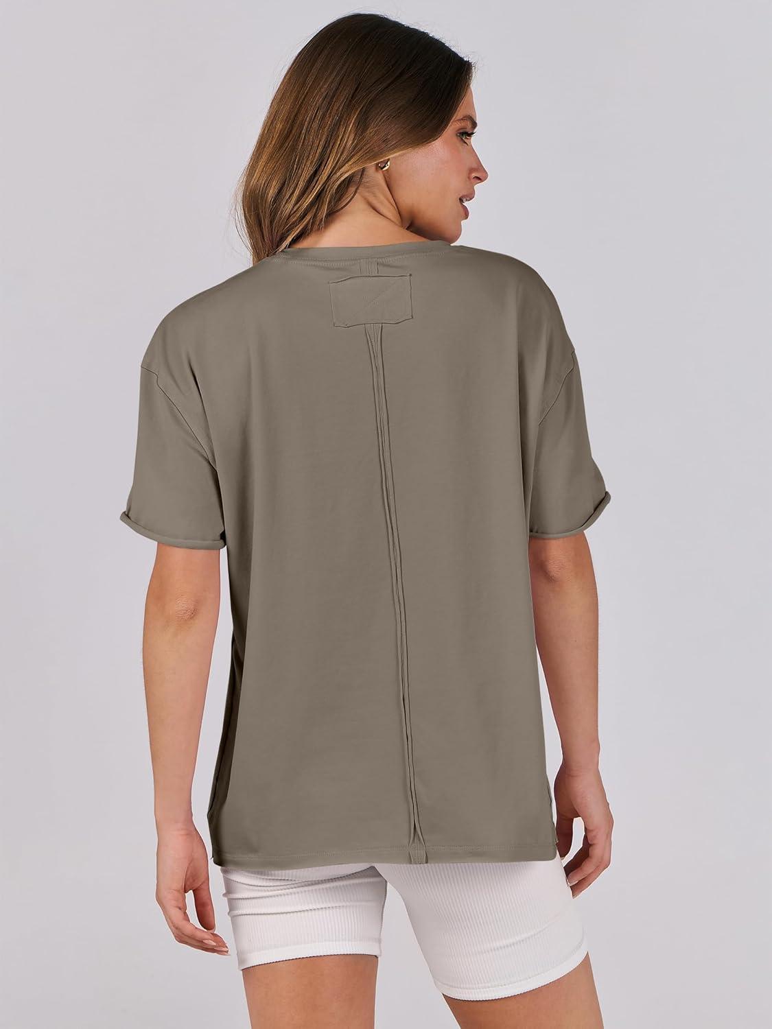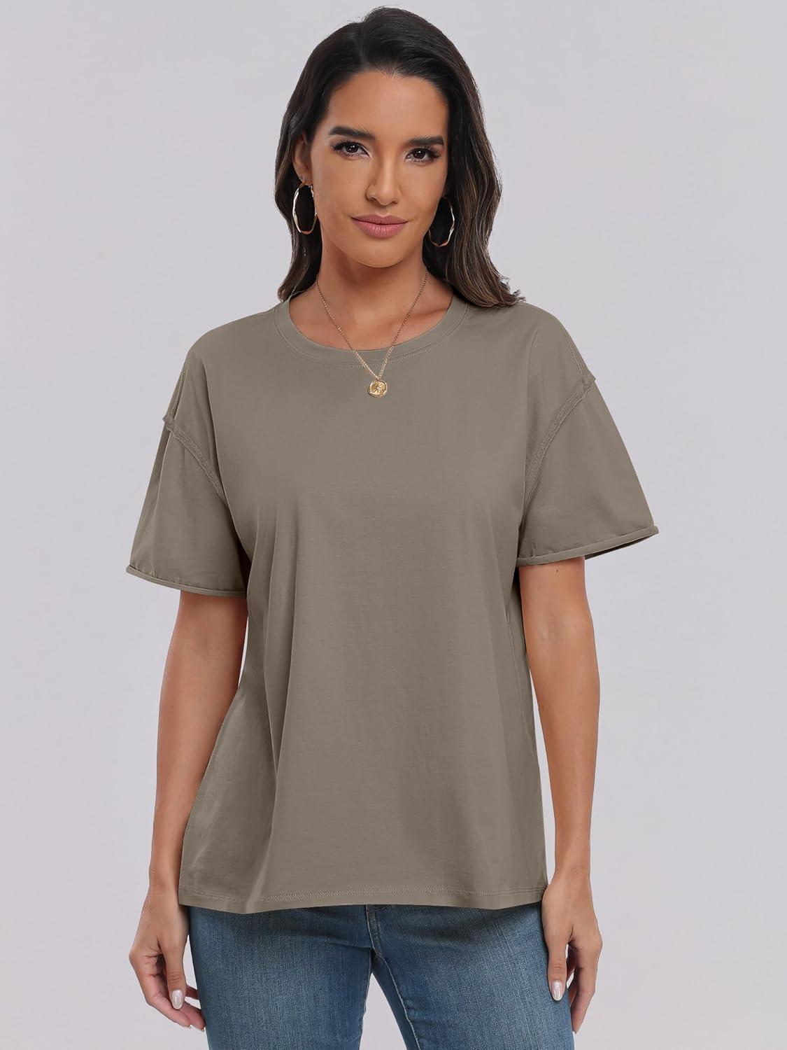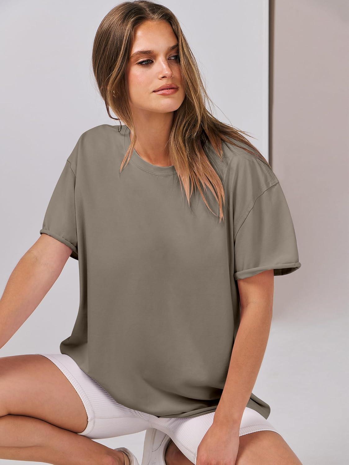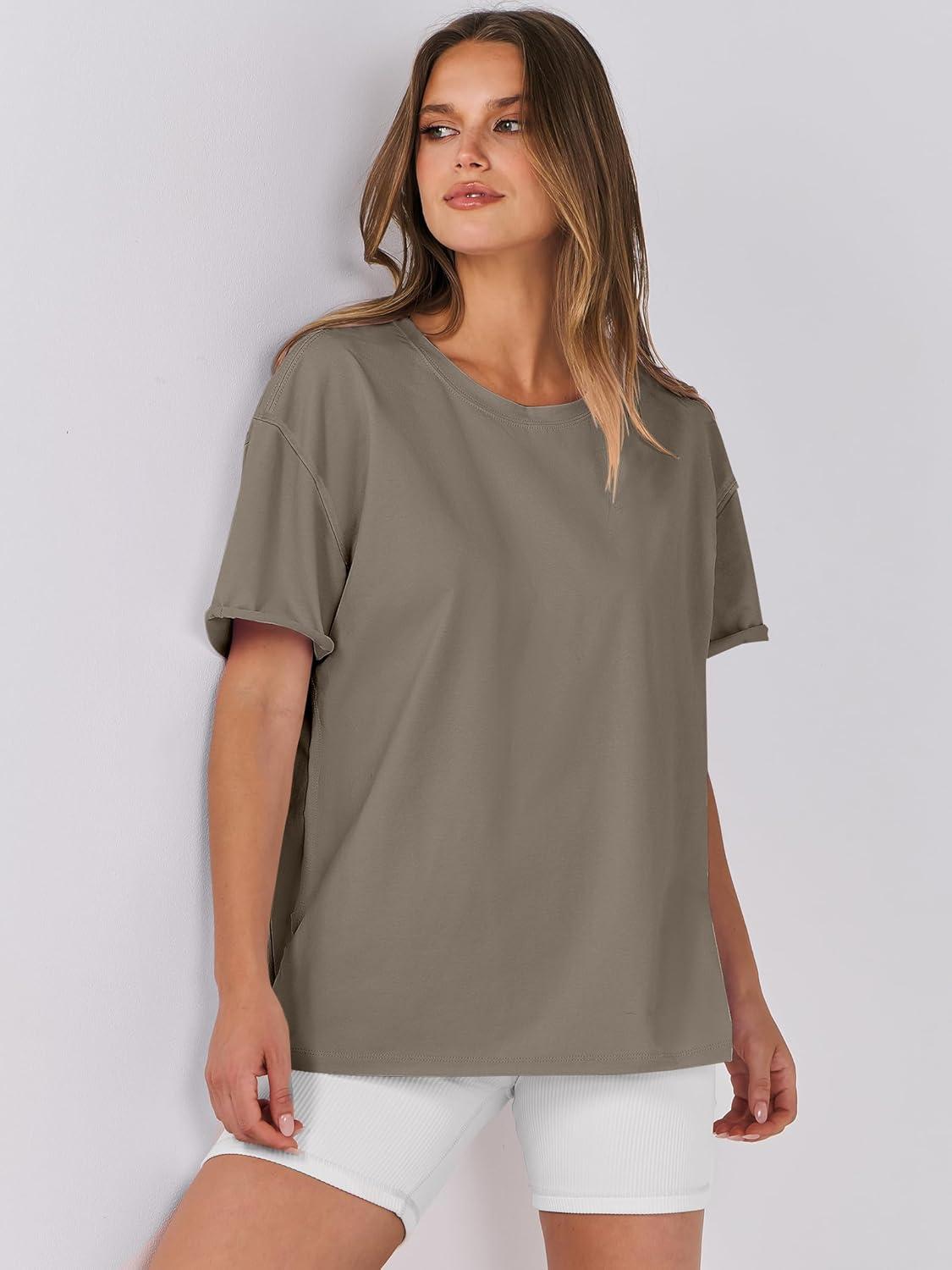 ANRABESS Womens Tops Oversized T Shirts Loose Fit Short Sleeve Crewneck Summer Casual 2025 Trendy Boxy Tee Blouse(Deep Khaki)