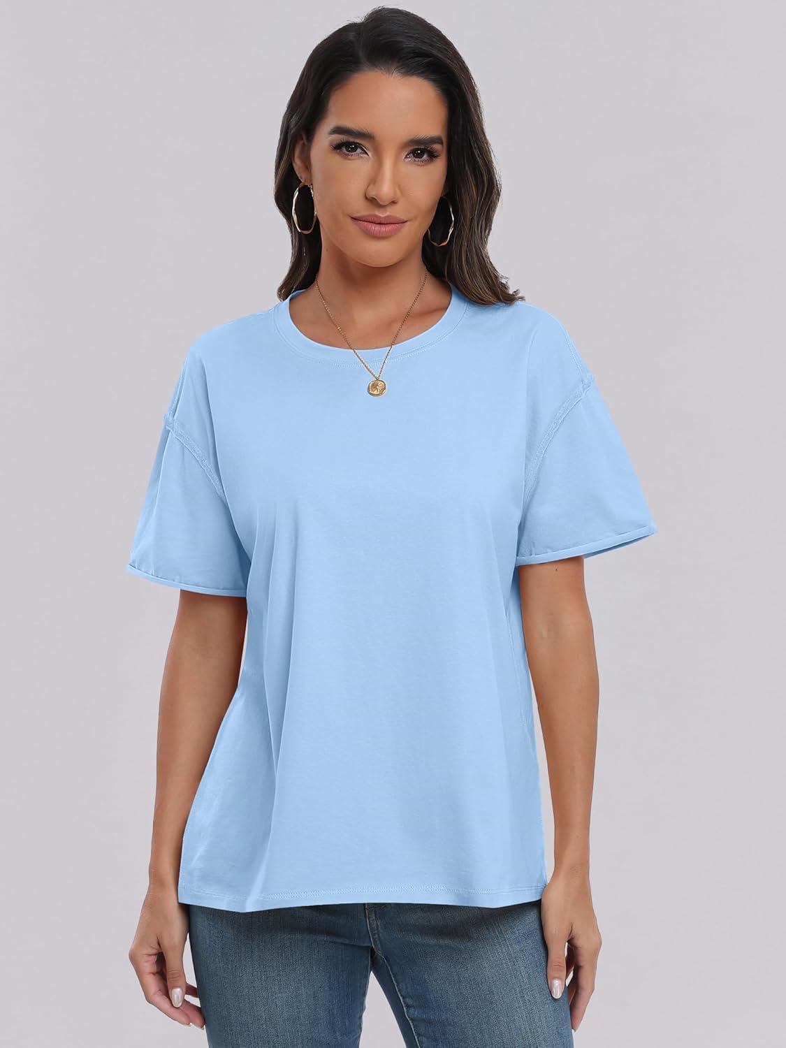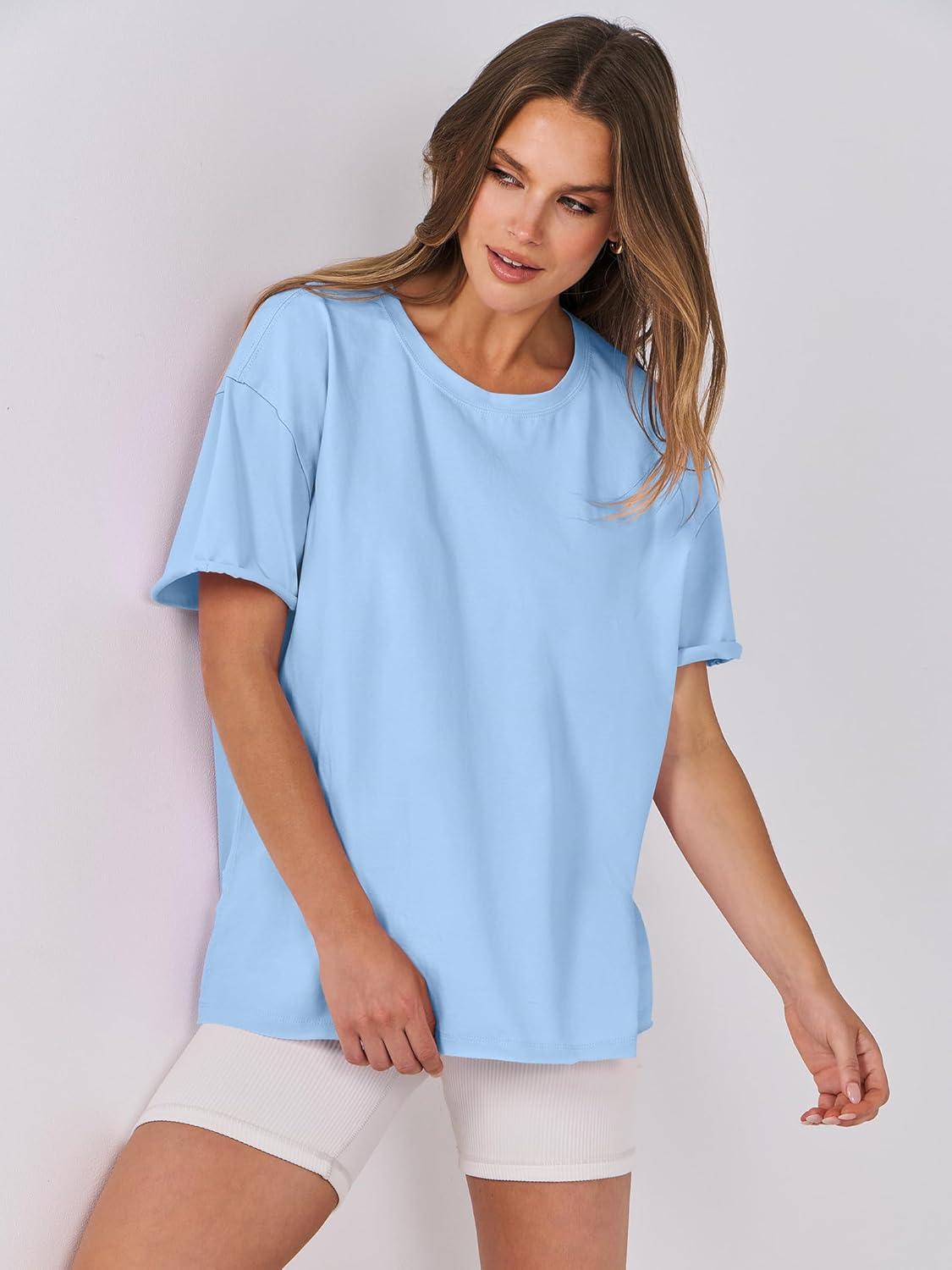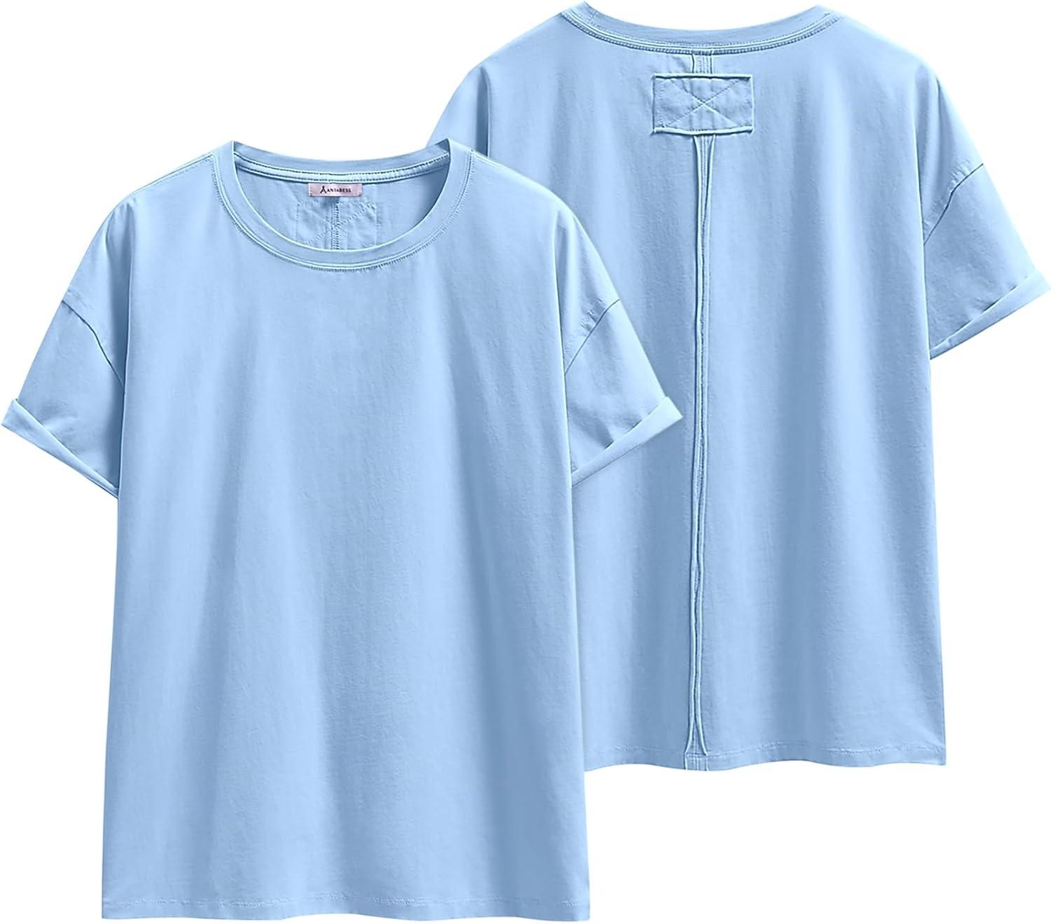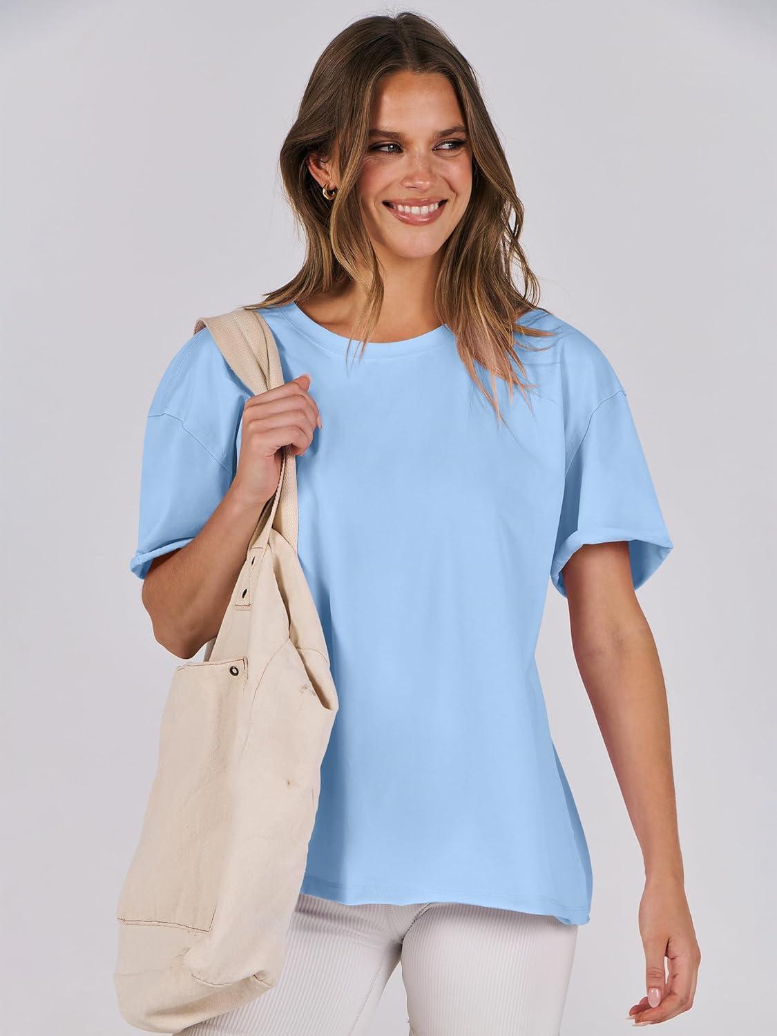 ANRABESS Womens Tops Oversized T Shirts Loose Fit Short Sleeve Crewneck Summer Casual 2025 Trendy Boxy Tee Blouse(Light Blue)