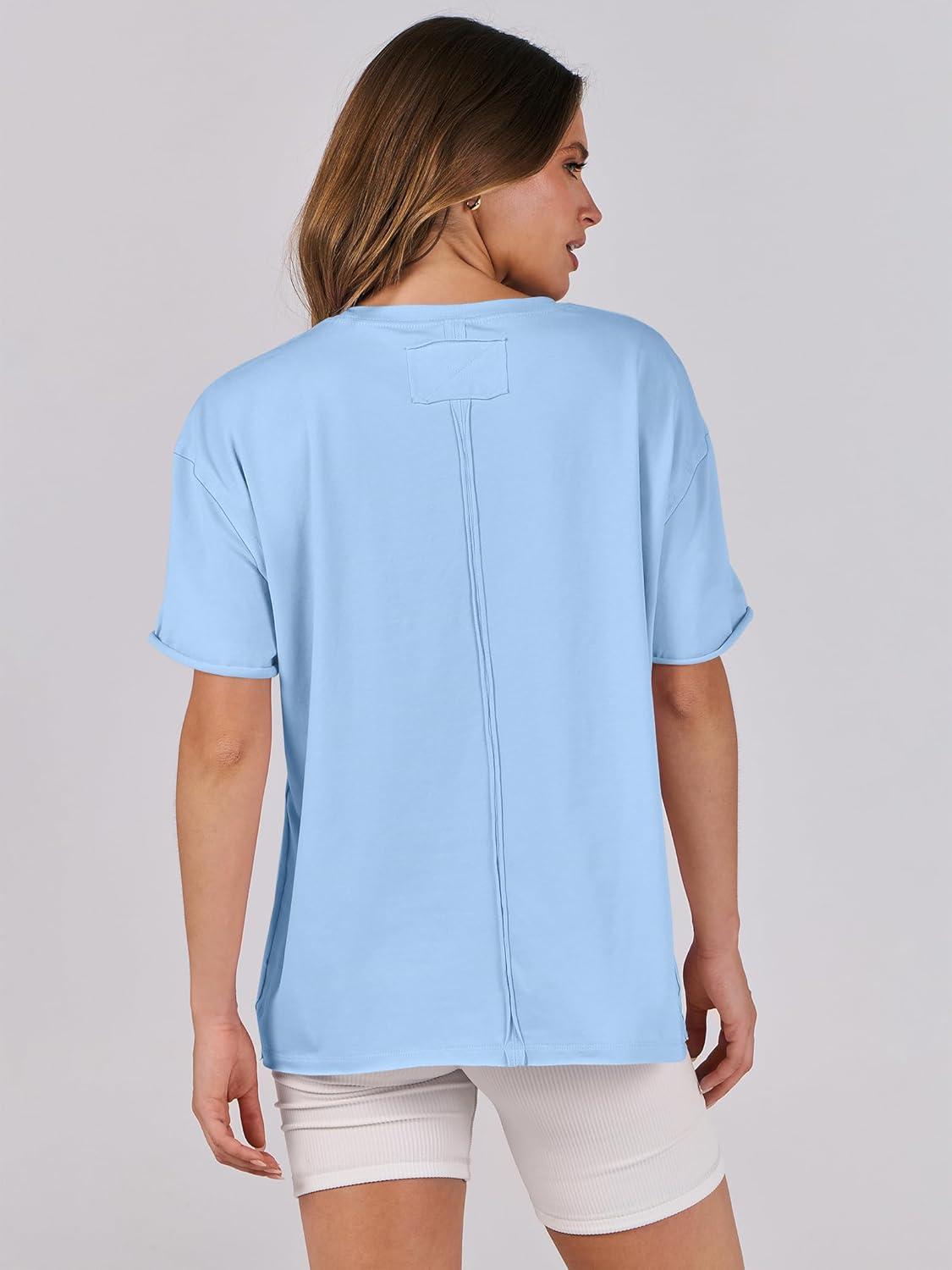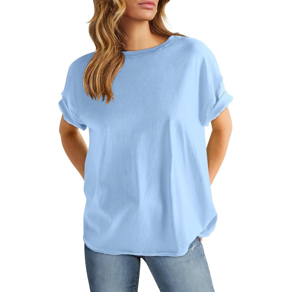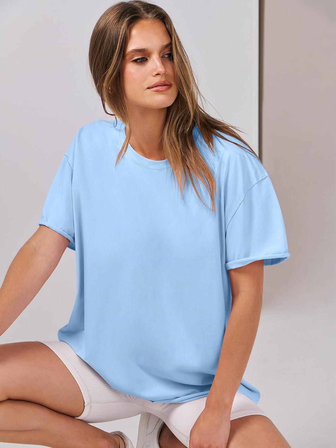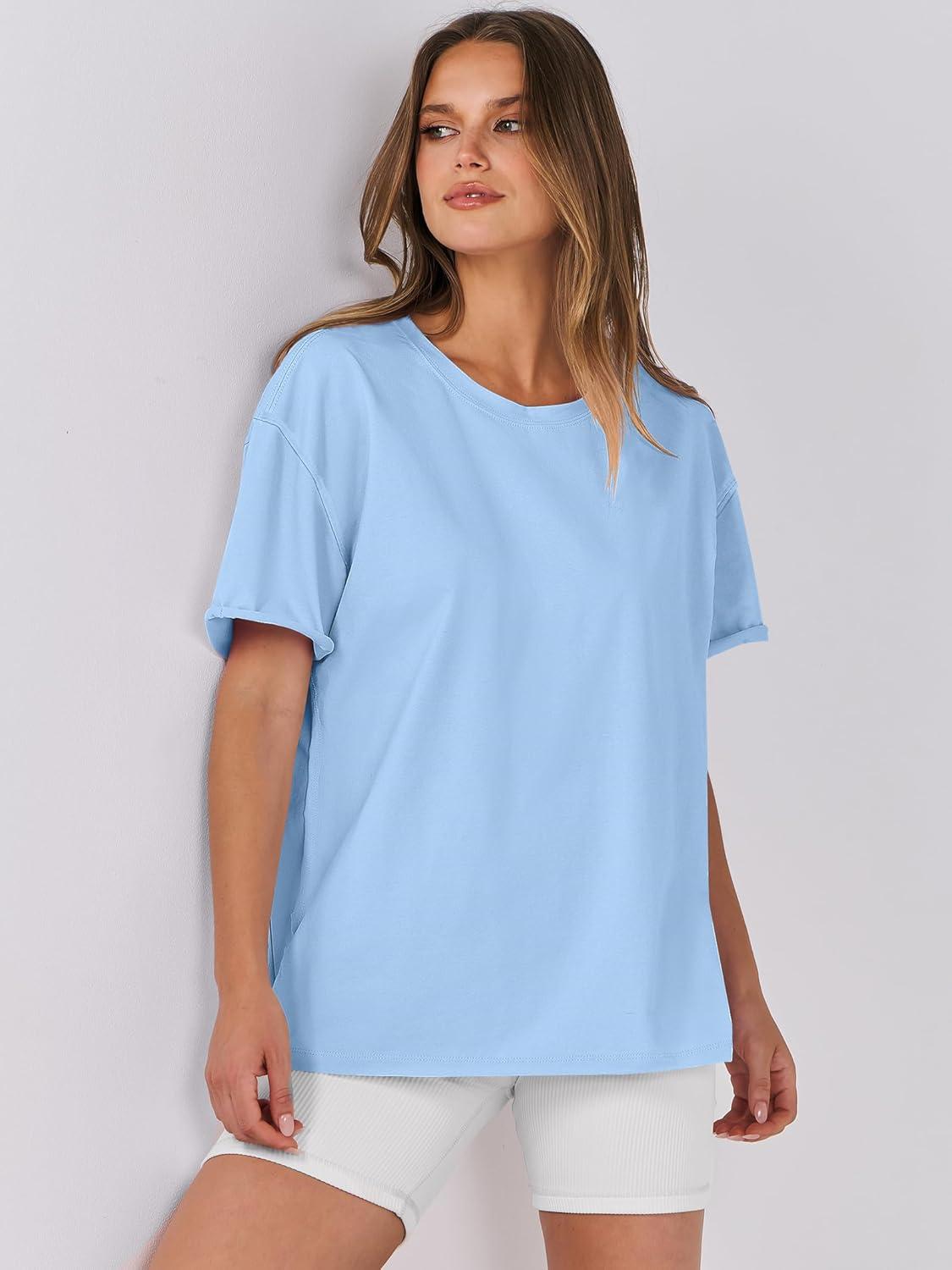 ANRABESS Womens Tops Oversized T Shirts Loose Fit Short Sleeve Crewneck Summer Casual 2025 Trendy Boxy Tee Blouse(Light Blue)