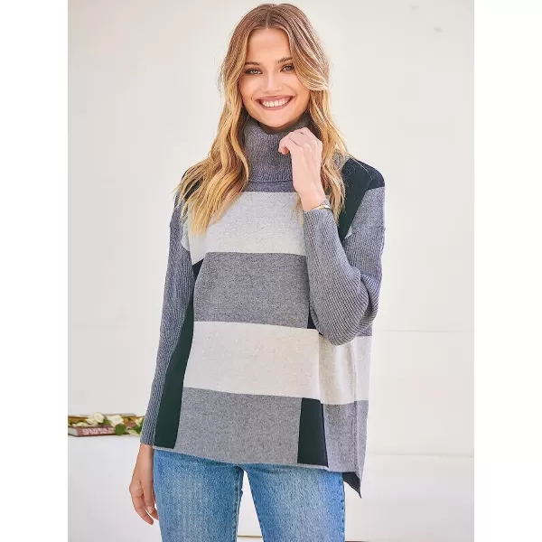ANRABESS Women's Turtleneck Oversized 2022 Long Batwing Sleeve Spilt Hem Knit Tunic Pullover Sweater Tops(Plaid-gray)