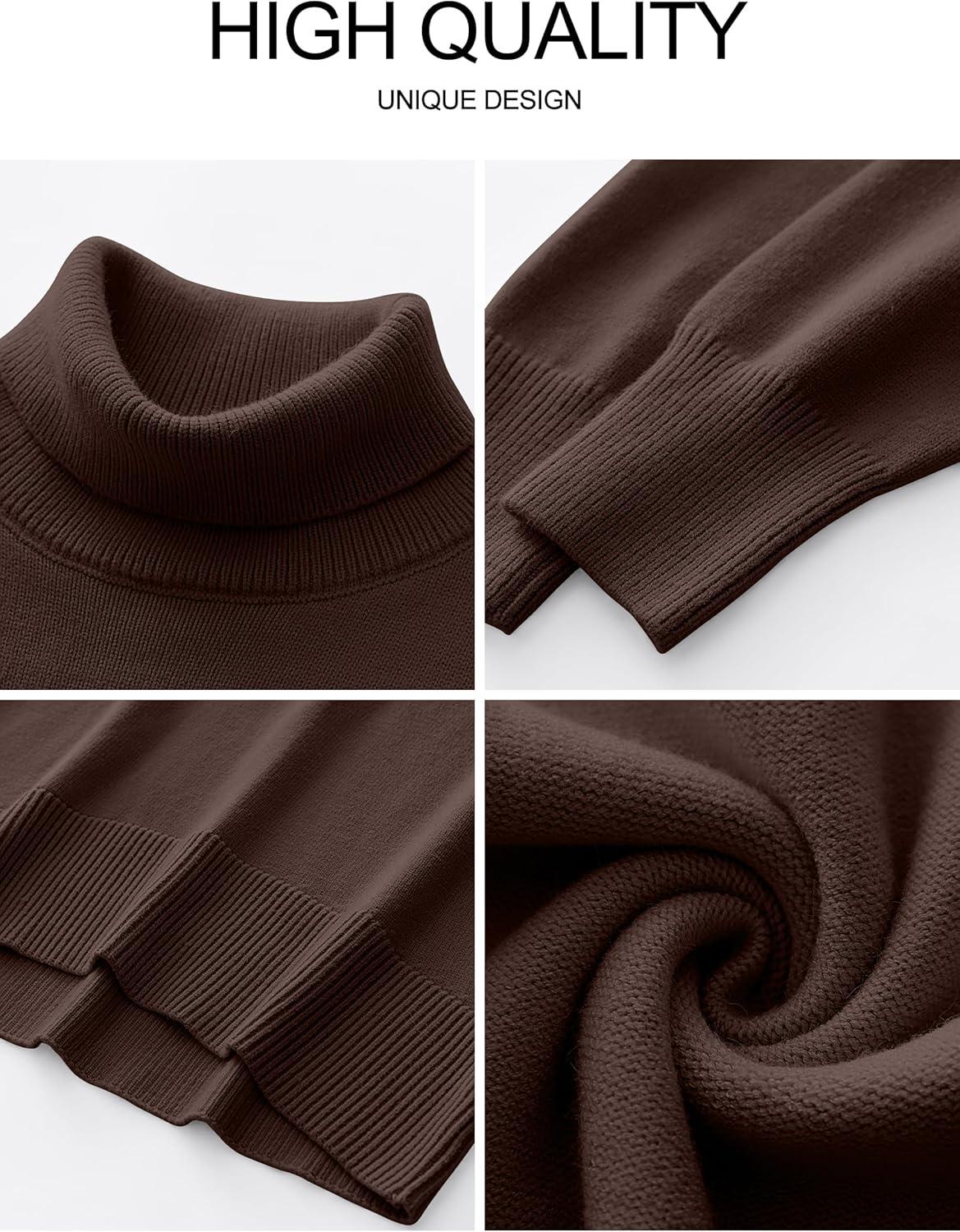 ANRABESS Womens Turtleneck Sweaters Long Sleeve Oversized Chunky Knit High Low Hem Pullover Sweater Top 2025 Fall Outfits(Chocola)