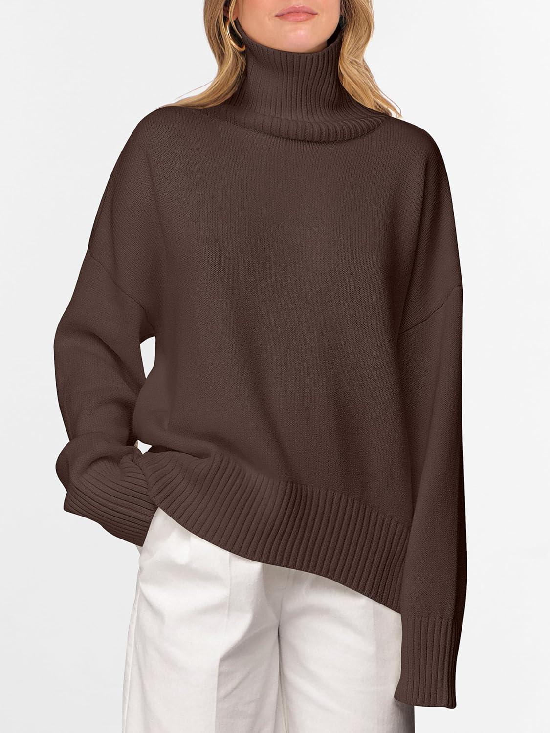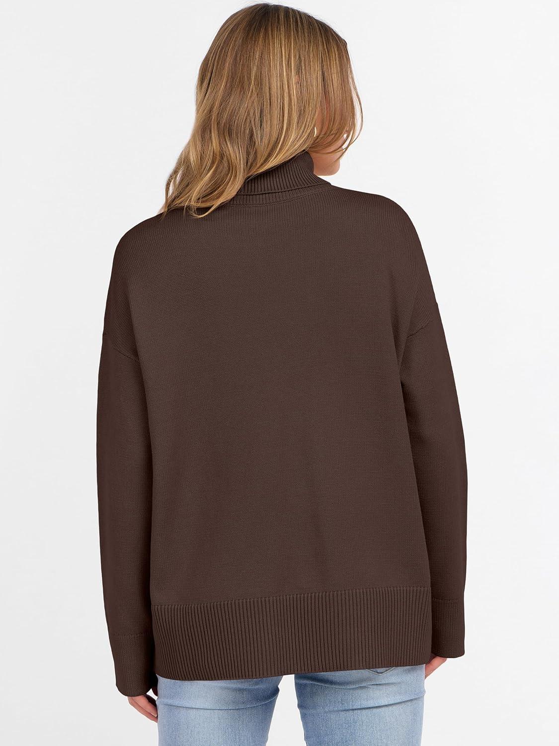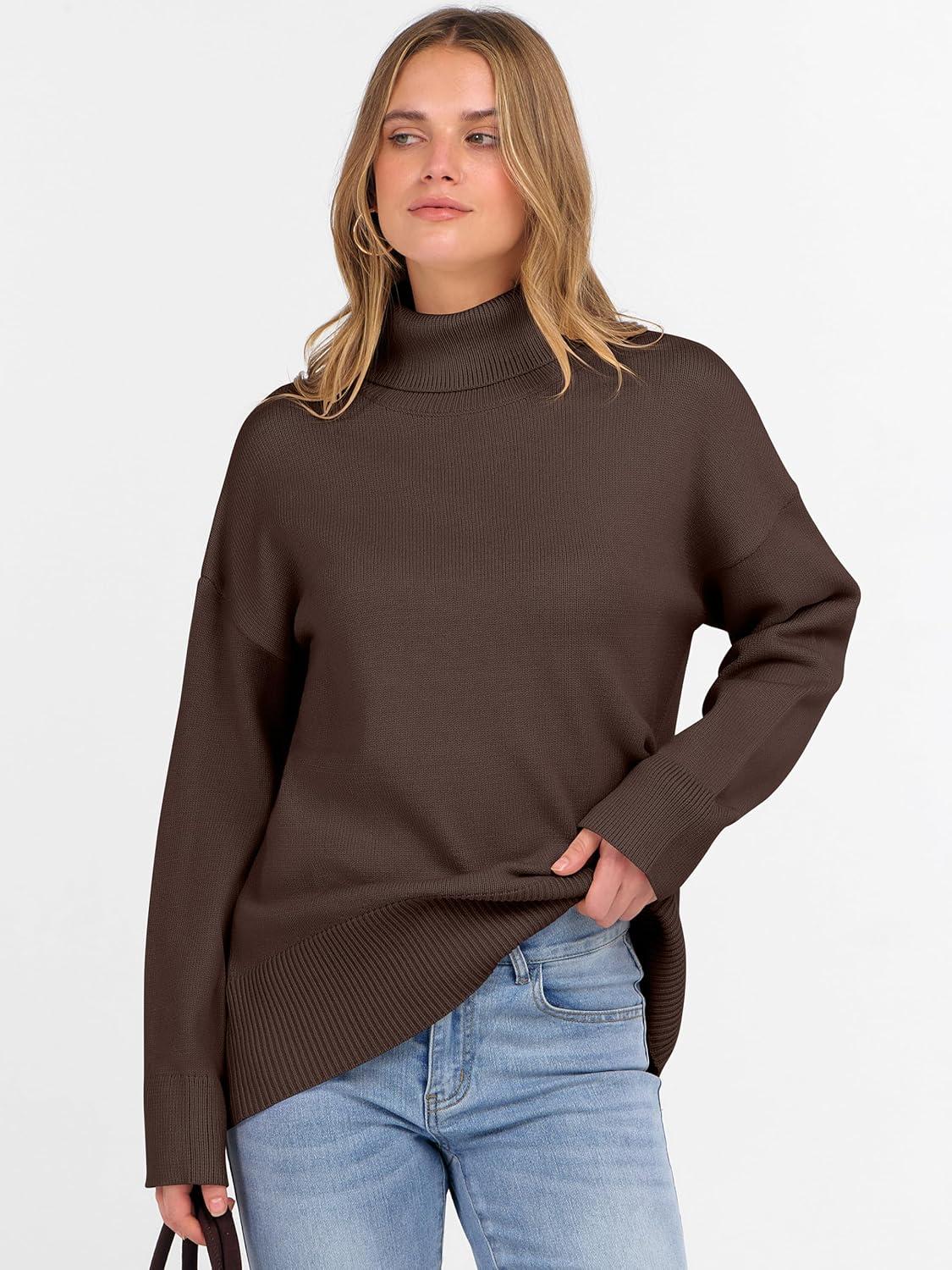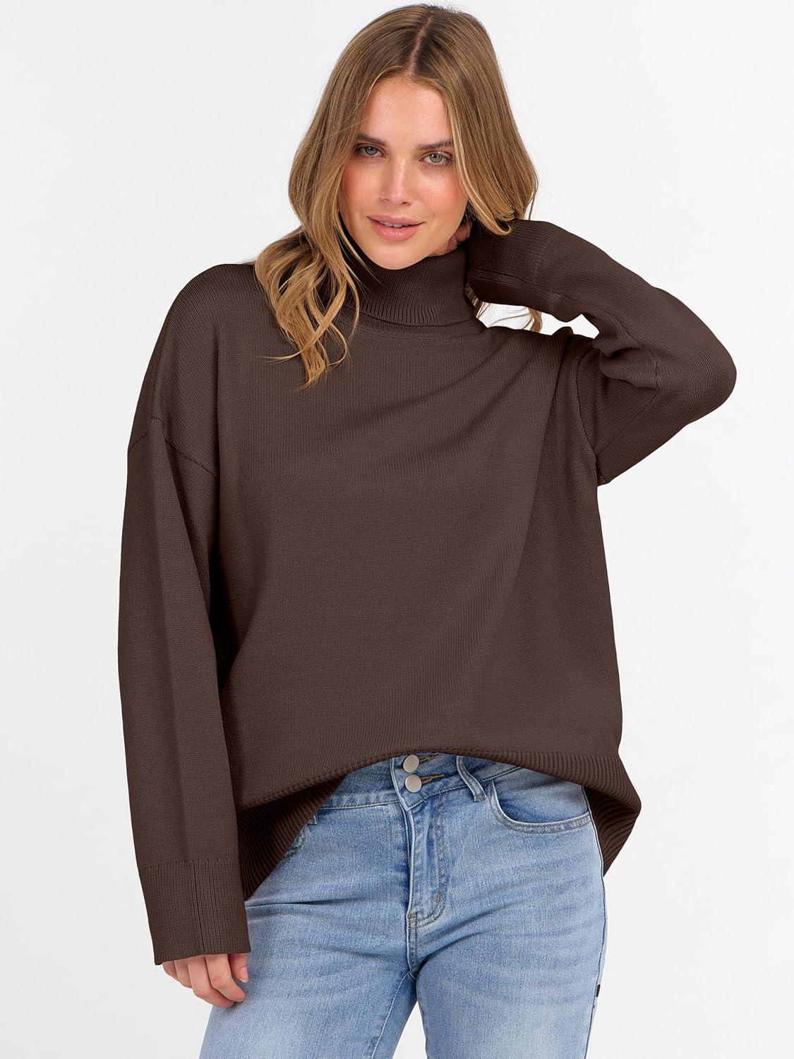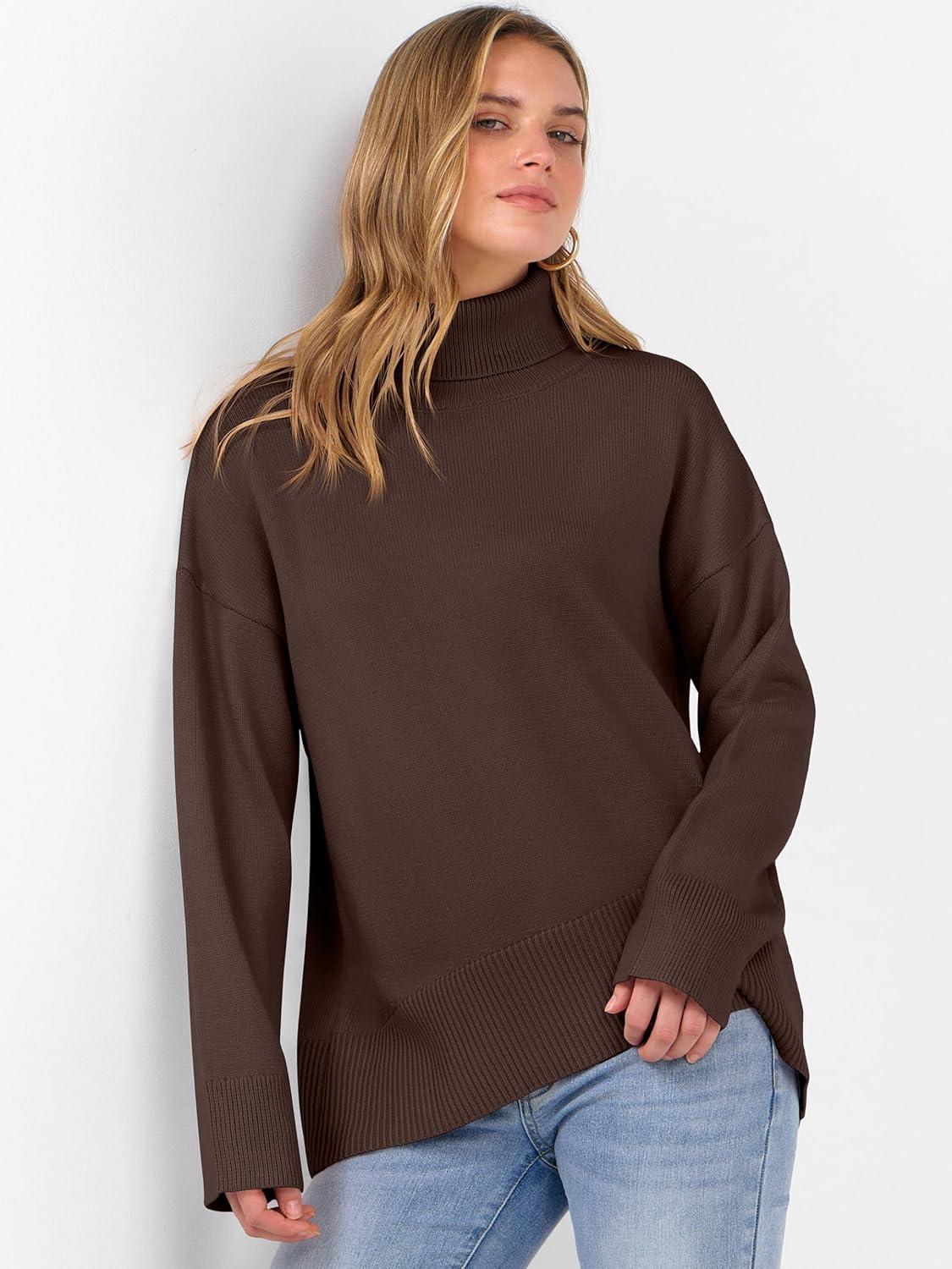 imageANRABESS Womens Turtleneck Sweaters Long Sleeve Oversized Chunky Knit High Low Hem Pullover Sweater Top 2025 Fall OutfitsChocola