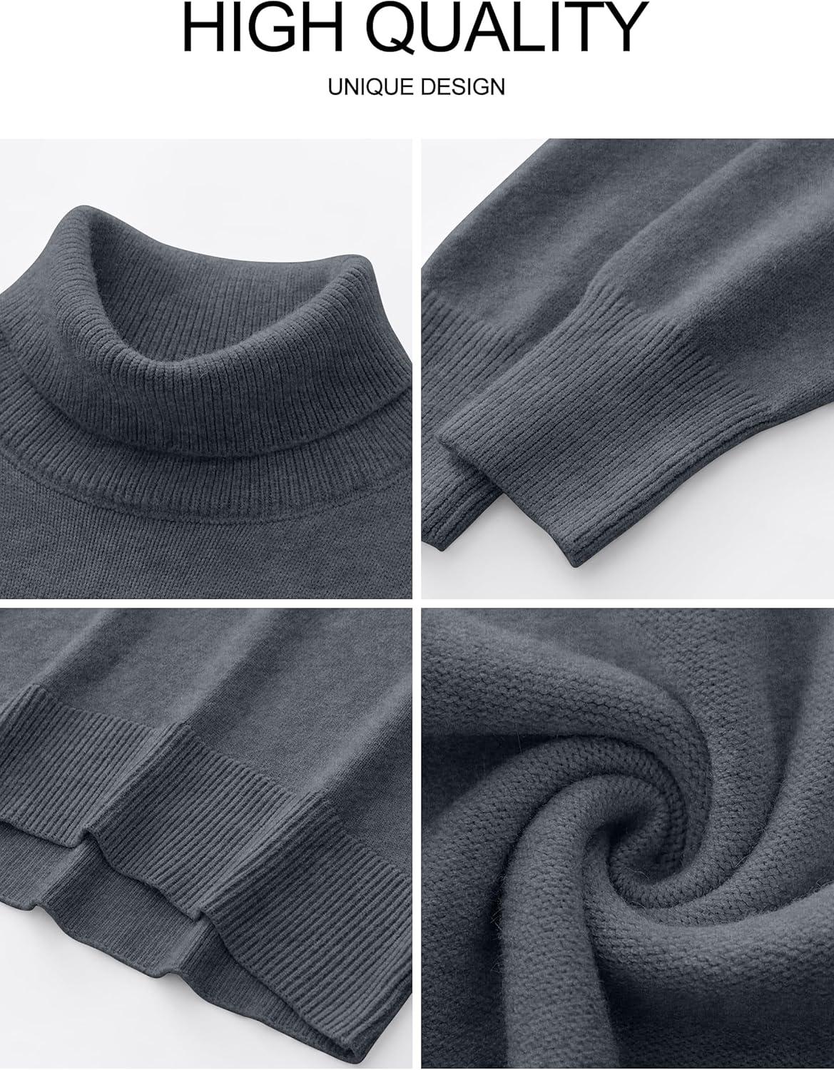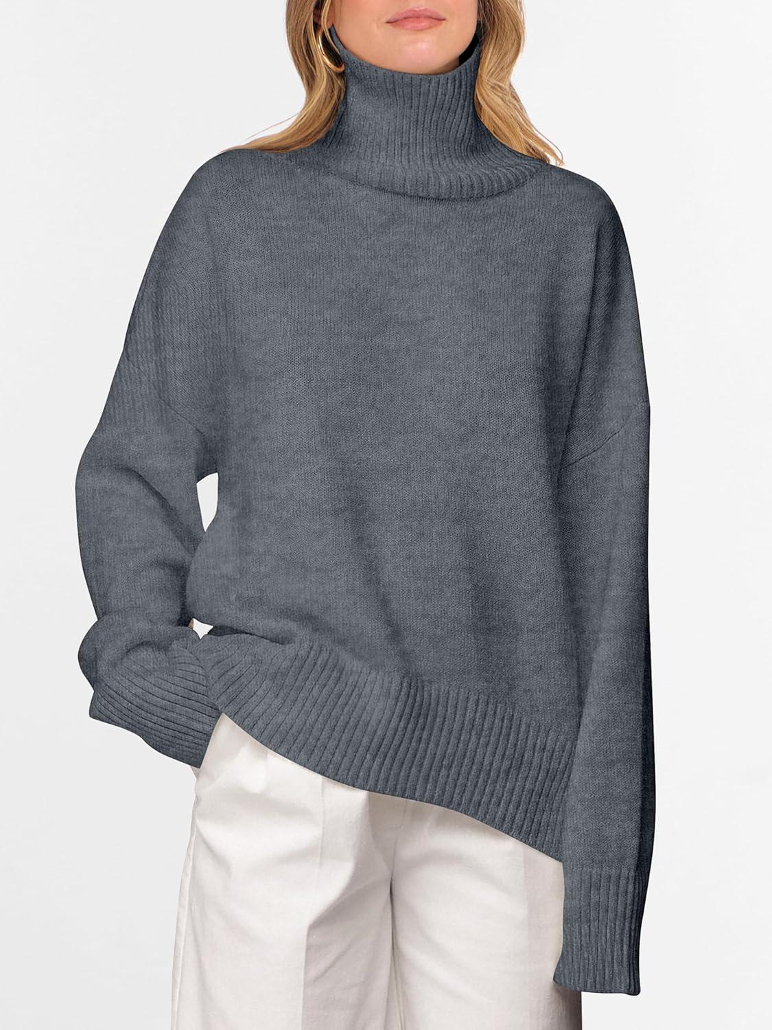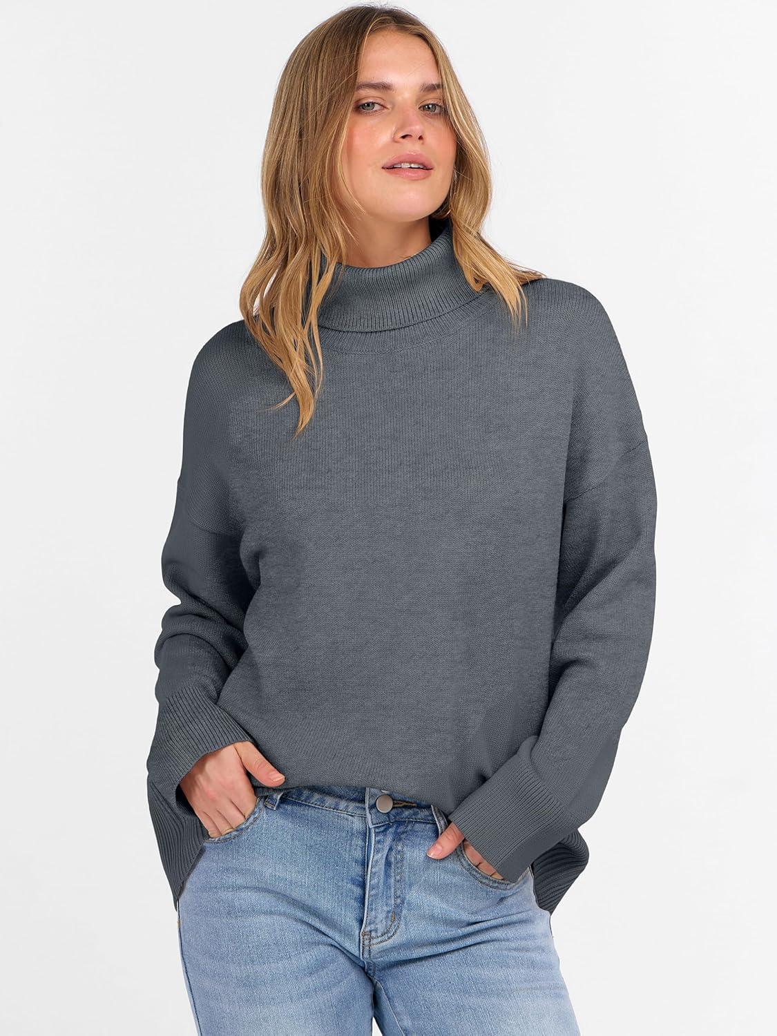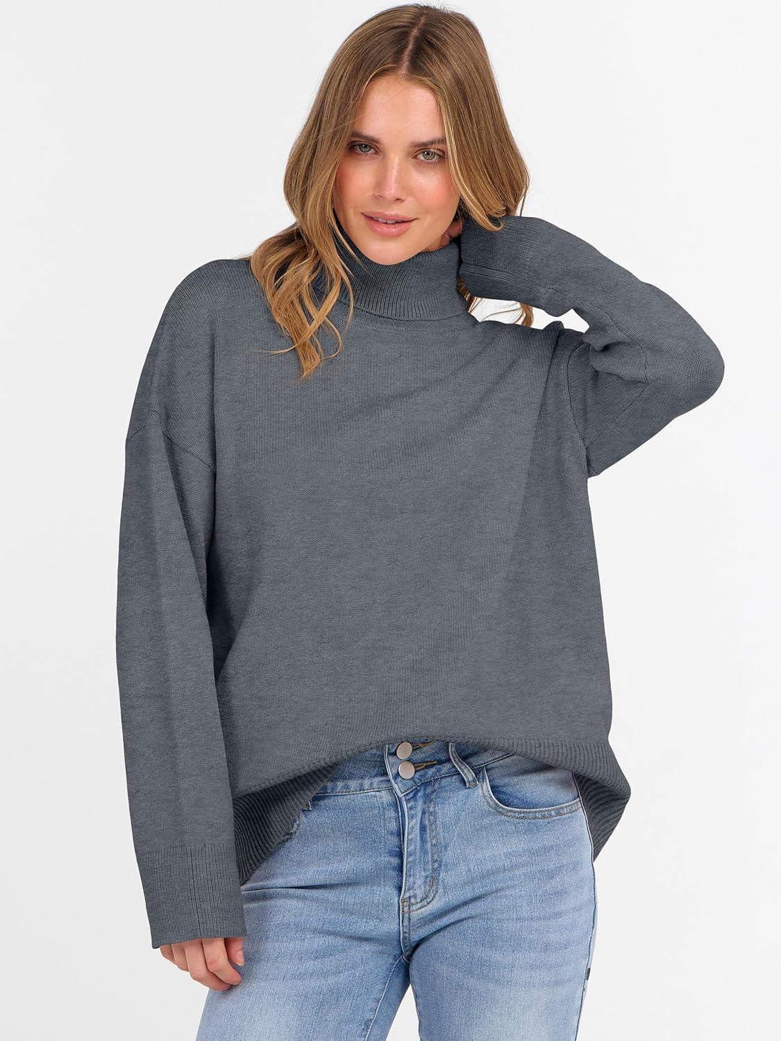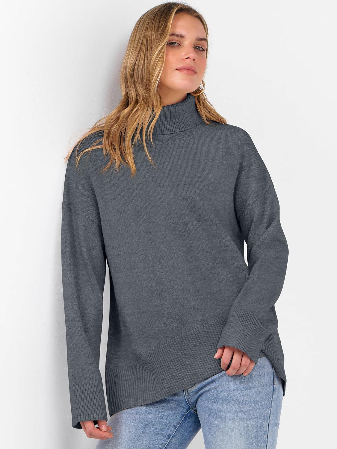ANRABESS Womens Turtleneck Sweaters Long Sleeve Oversized Chunky Knit High Low Hem Pullover Sweater Top 2025 Fall Outfits(Dark Gray)