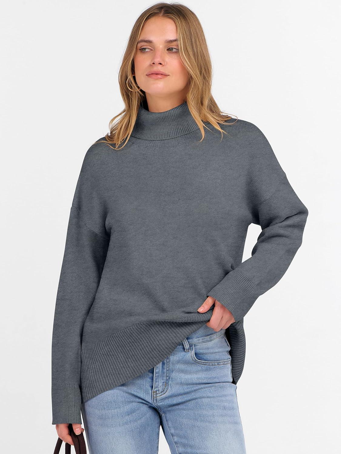 imageANRABESS Womens Turtleneck Sweaters Long Sleeve Oversized Chunky Knit High Low Hem Pullover Sweater Top 2025 Fall OutfitsDark Gray