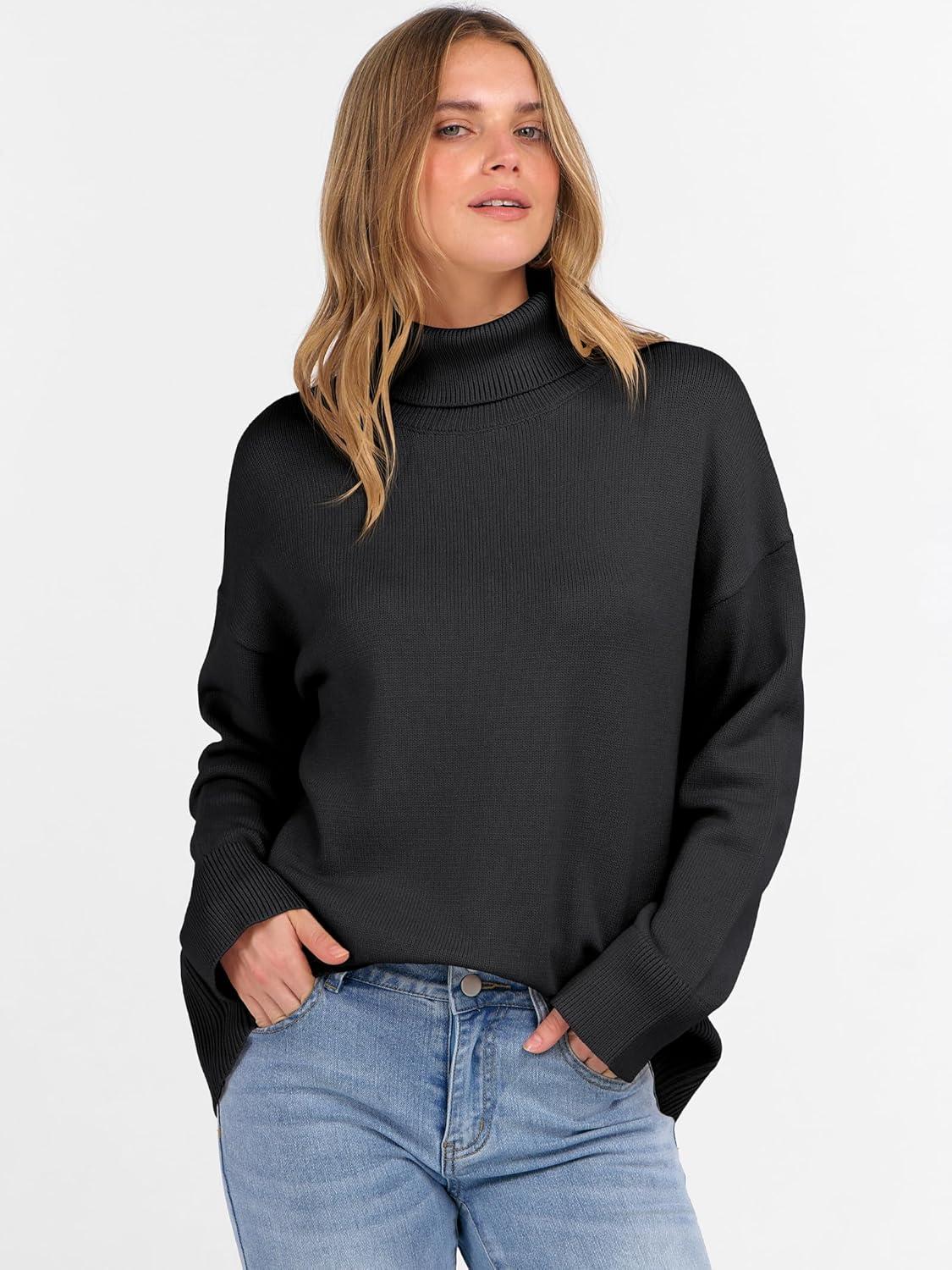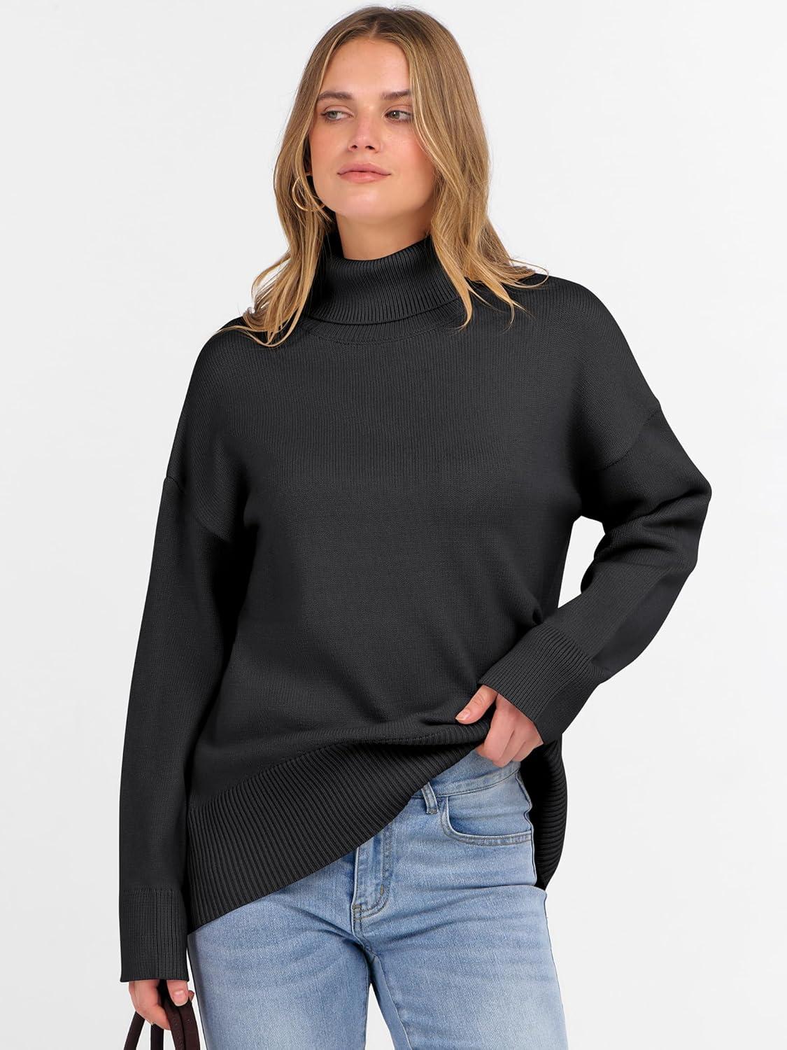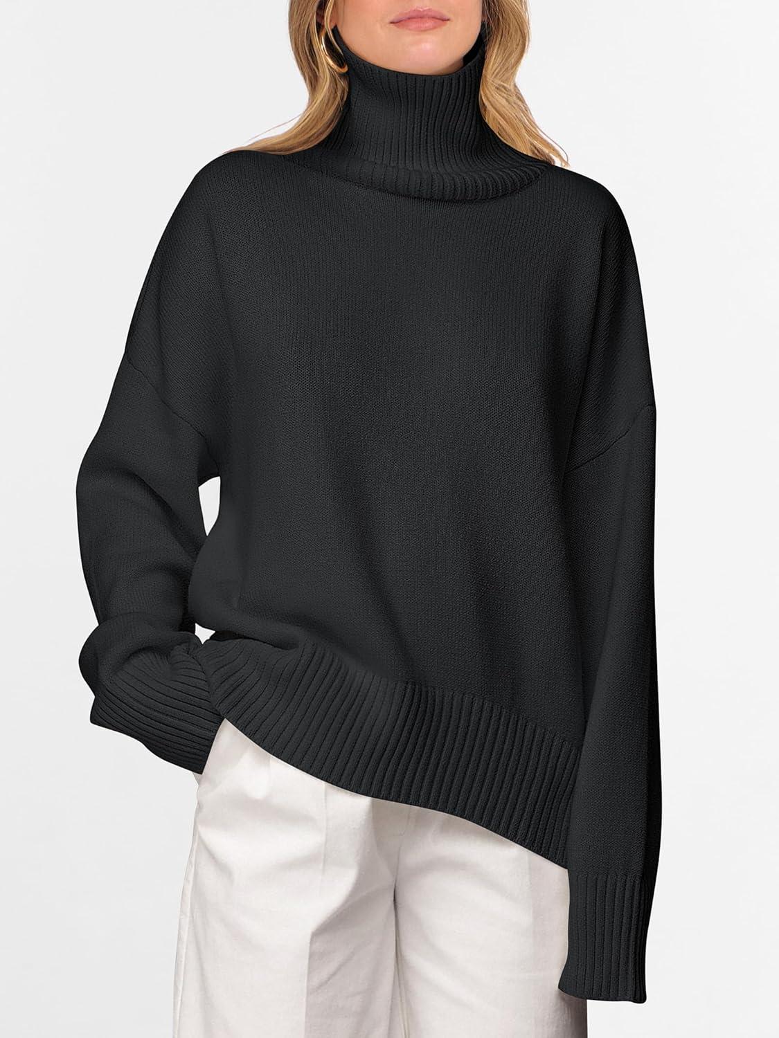 imageANRABESS Womens Turtleneck Sweaters Oversized Chunky Long Sleeve Knit High Low Hem Pullover Top 2025 Fall Winter FashionBlack