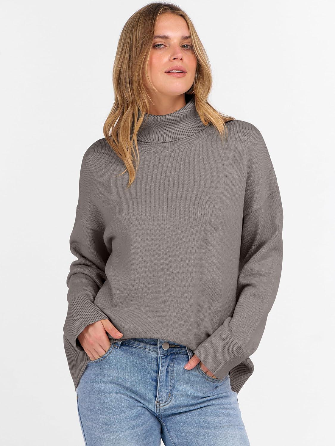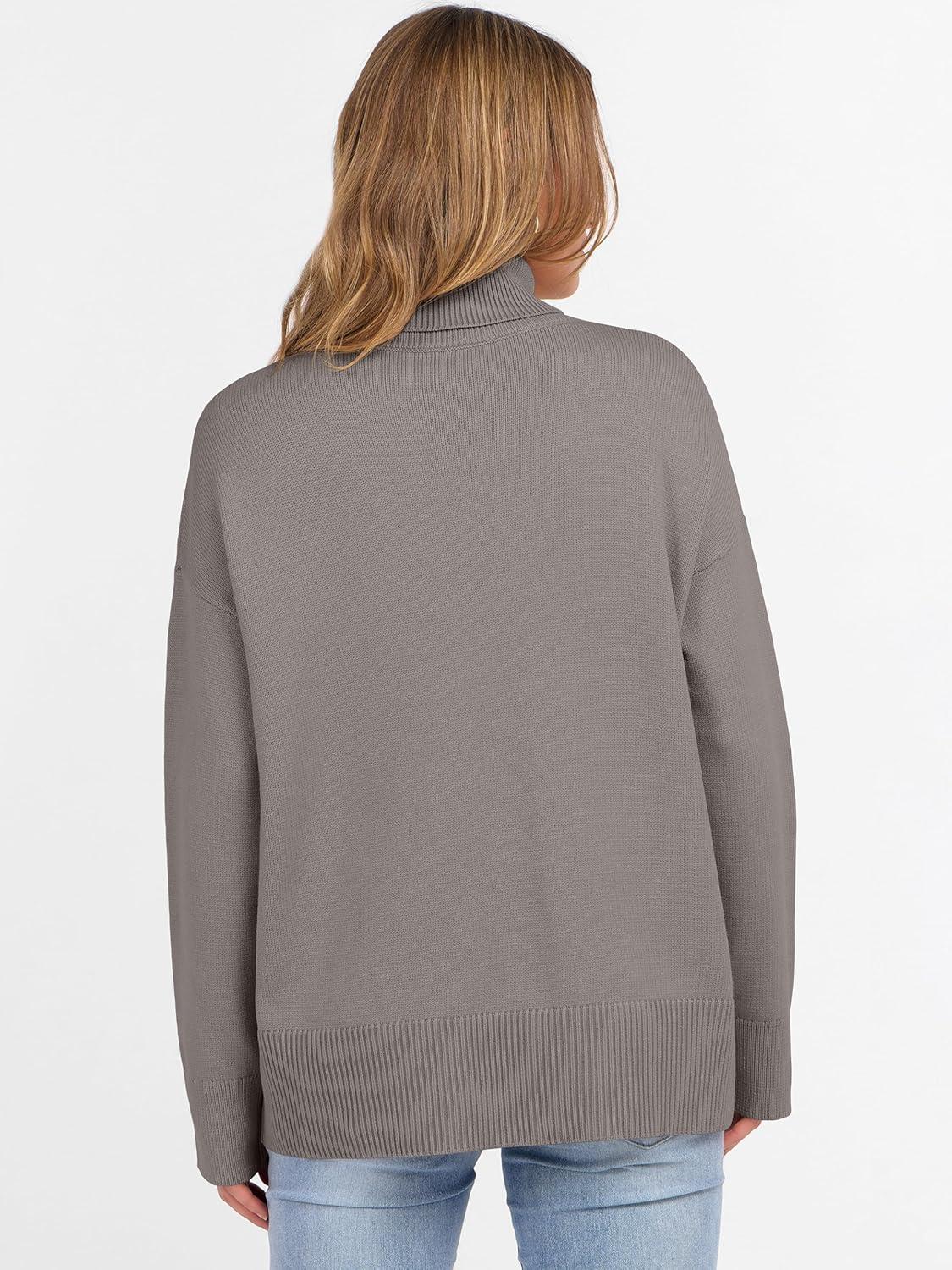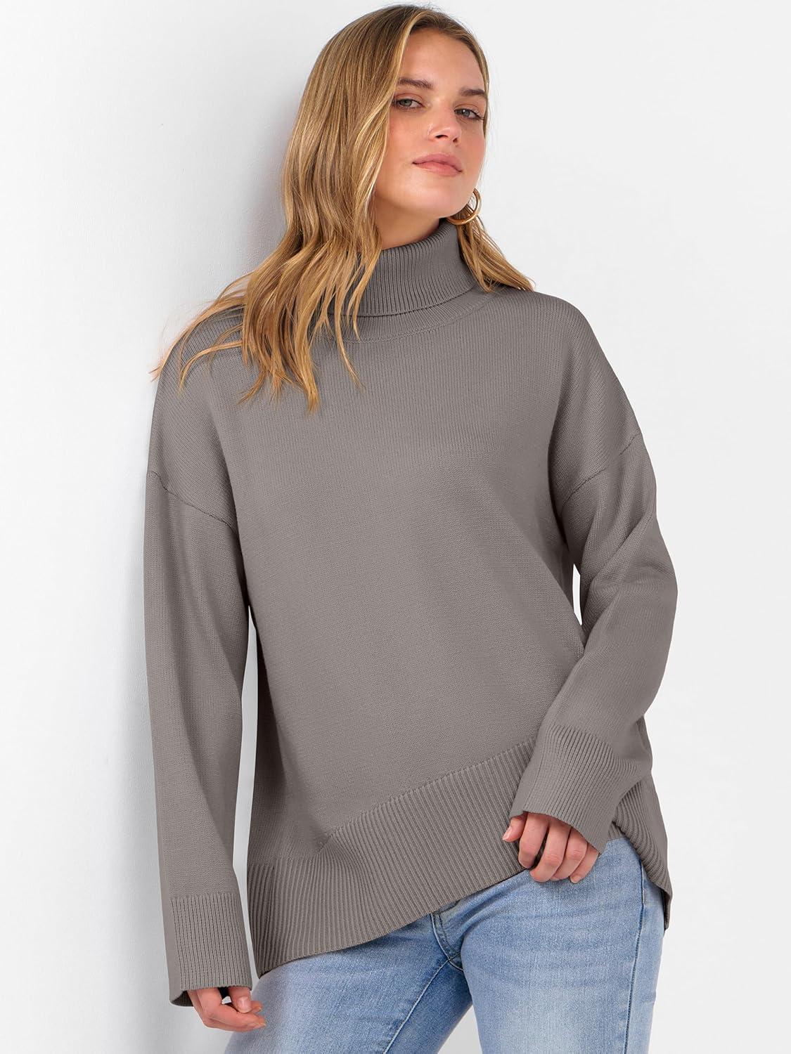 imageANRABESS Womens Turtleneck Sweaters Oversized Chunky Long Sleeve Knit High Low Hem Pullover Top 2025 Fall Winter FashionGrey Khaki