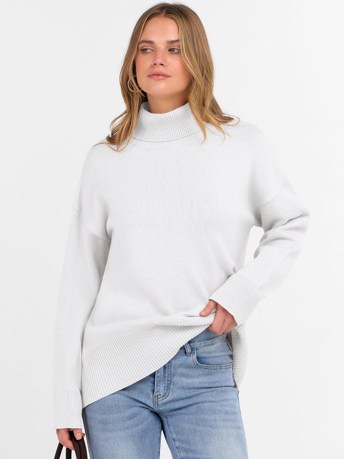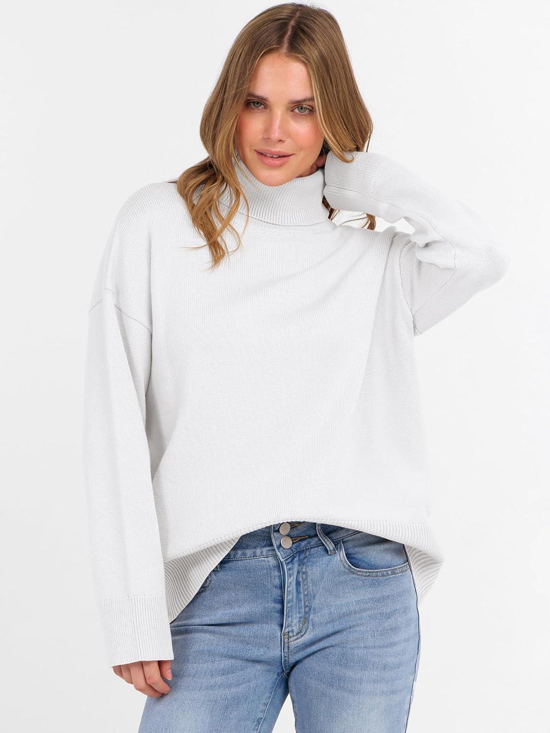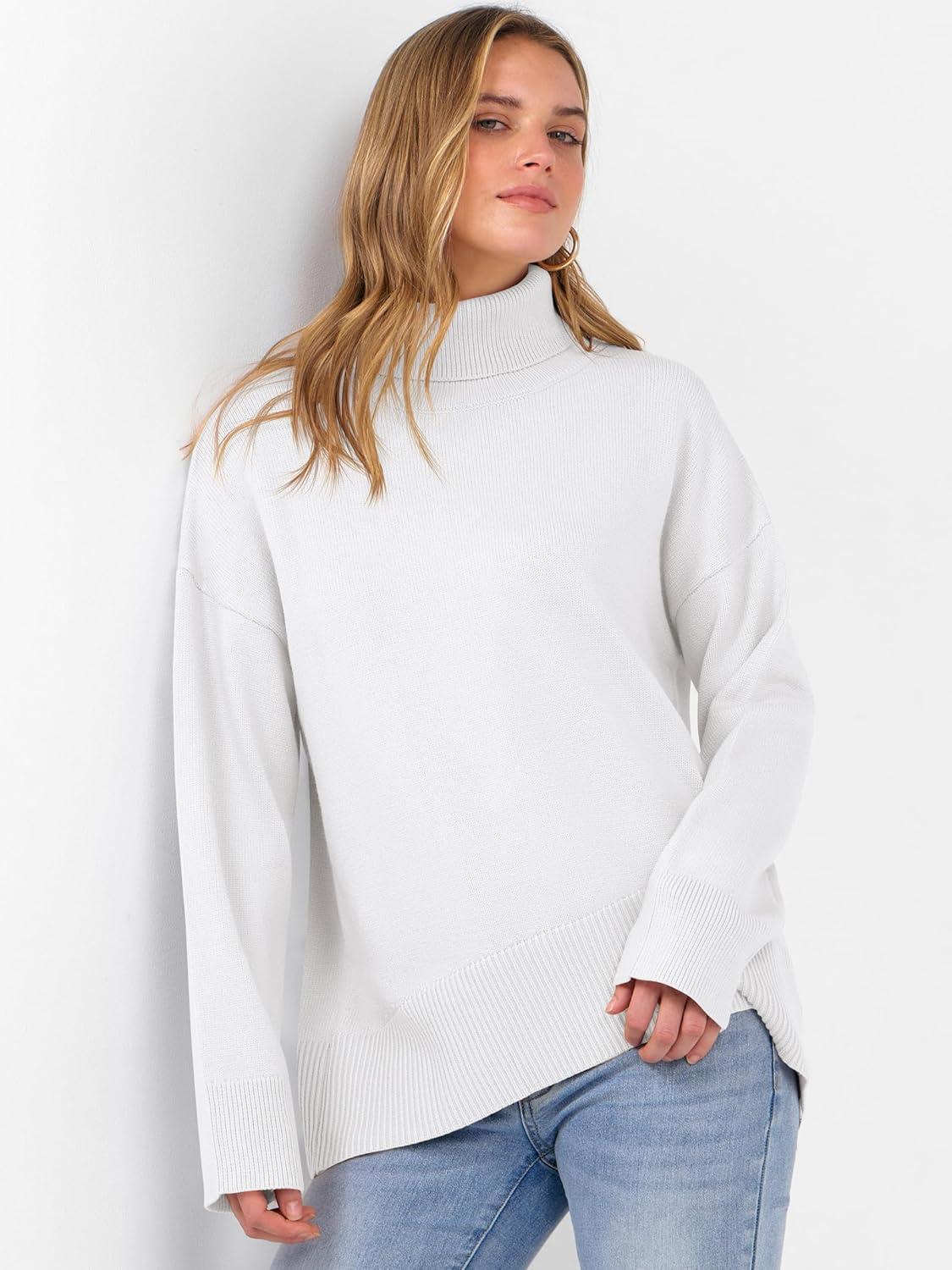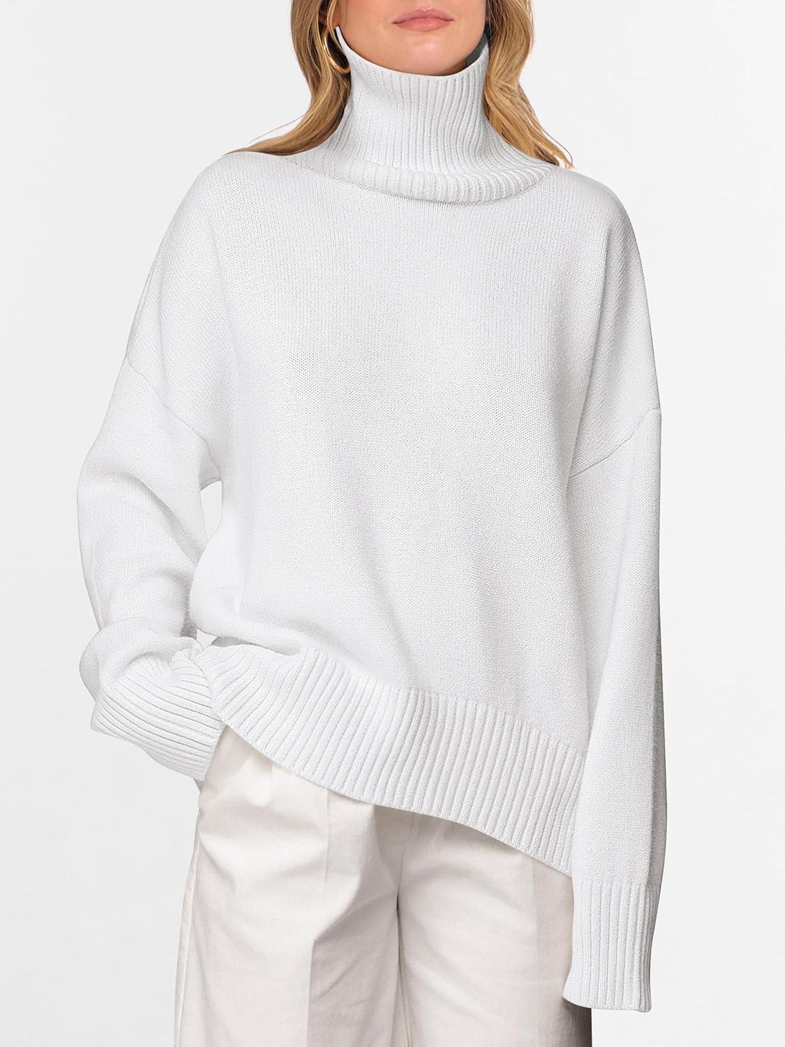 imageANRABESS Womens Turtleneck Sweaters Oversized Chunky Long Sleeve Knit High Low Hem Pullover Top 2025 Fall Winter FashionWhite