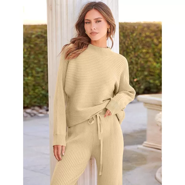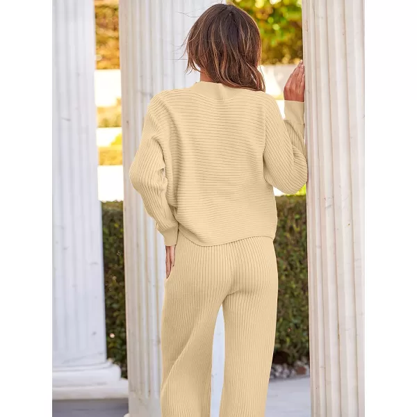 imageANRABESS Womens Two Piece Outfits Batwing Long Sleeve Crop Top amp Ribbed Knit Wide Leg Pants Loungewear Sweater SetsApricot