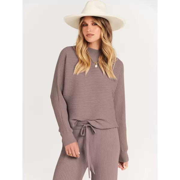 imageANRABESS Womens Two Piece Outfits Batwing Long Sleeve Crop Top amp Ribbed Knit Wide Leg Pants Loungewear Sweater SetsRed Apricot
