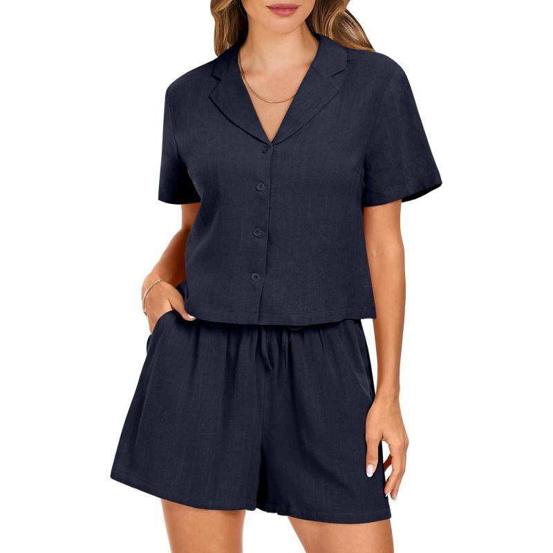 Don’t miss out on our limited-time offer: buy ANRABESS Women’s Two Piece Outfits Linen Sets Short Sleeve Button Crop Tops Casual Lounge Shorts Set with Pockets(Navy Blue), get {accessory} free!