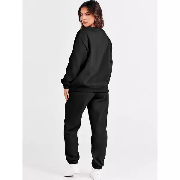 ANRABESS Women’s Two Piece Outfits Long Sleeve Crewneck Sweatsuit with Jogger Pants Lounge Sets with Pockets(Black)