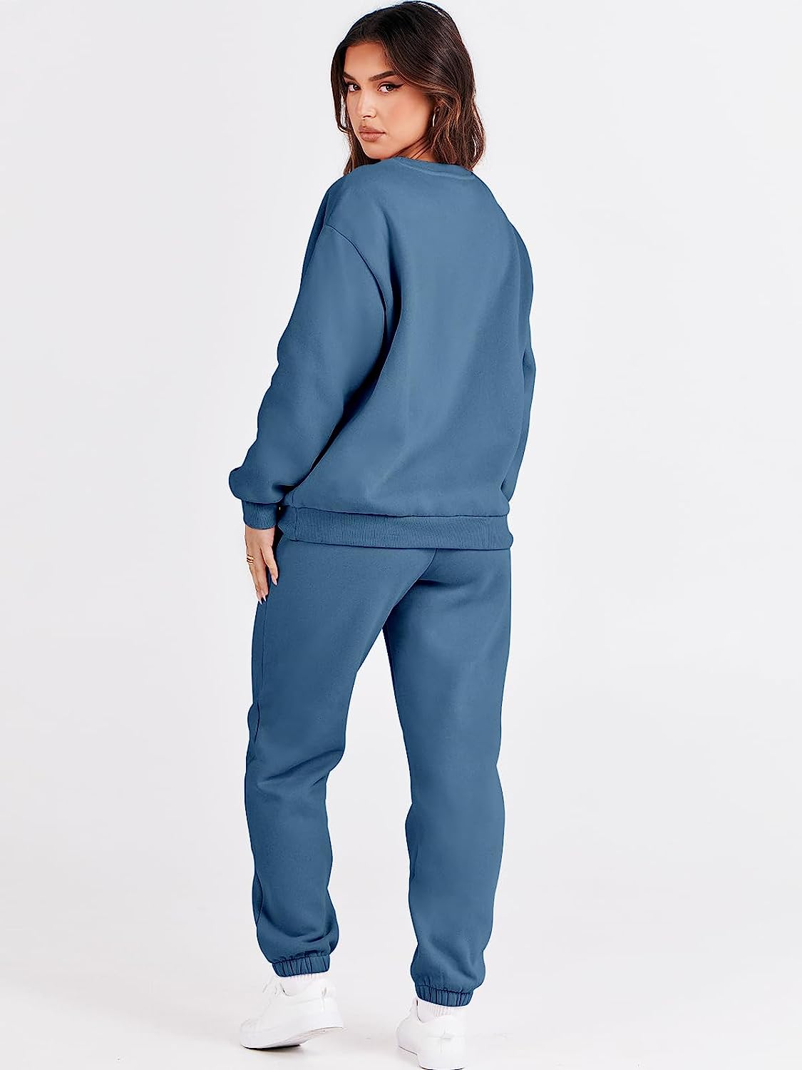 ANRABESS Women’s Two Piece Outfits Long Sleeve Crewneck Sweatsuit with Jogger Pants Lounge Sets with Pockets(Blue)