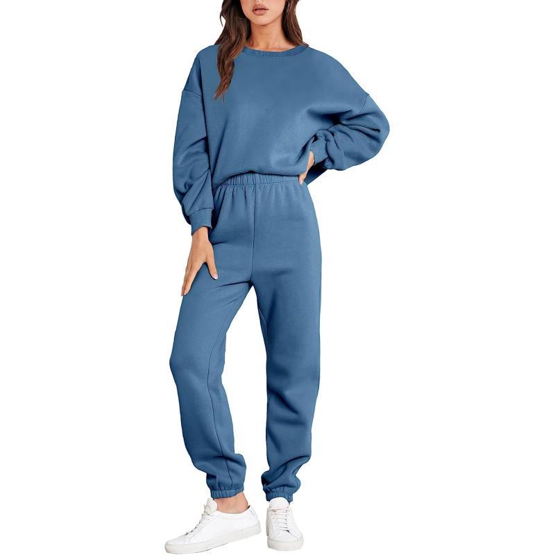 Design – Crewneck, Long sleeve, pullover tops, oversized, high waisted, pockets, ribbed cuffs, 2 piece outfits sweatsuit.