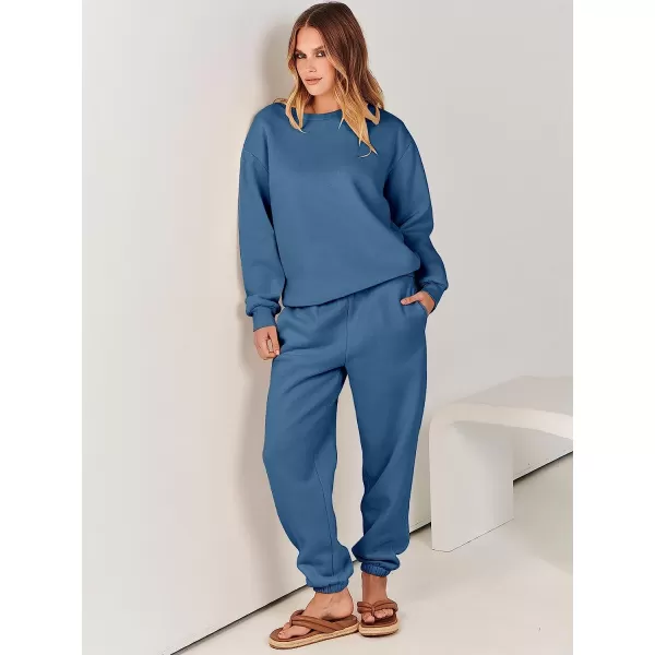 imageANRABESS Womens Two Piece Outfits Long Sleeve Crewneck Sweatsuit with Jogger Pants Lounge Sets with PocketsBlue