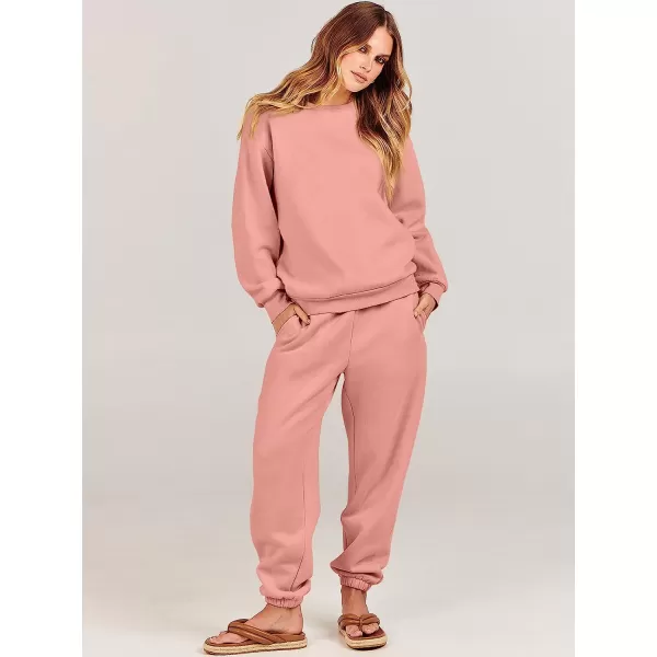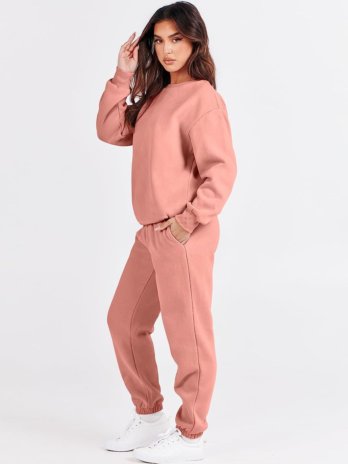 Design – Crewneck, Long sleeve, pullover tops, oversized, high waisted, pockets, ribbed cuffs, 2 piece outfits sweatsuit.
