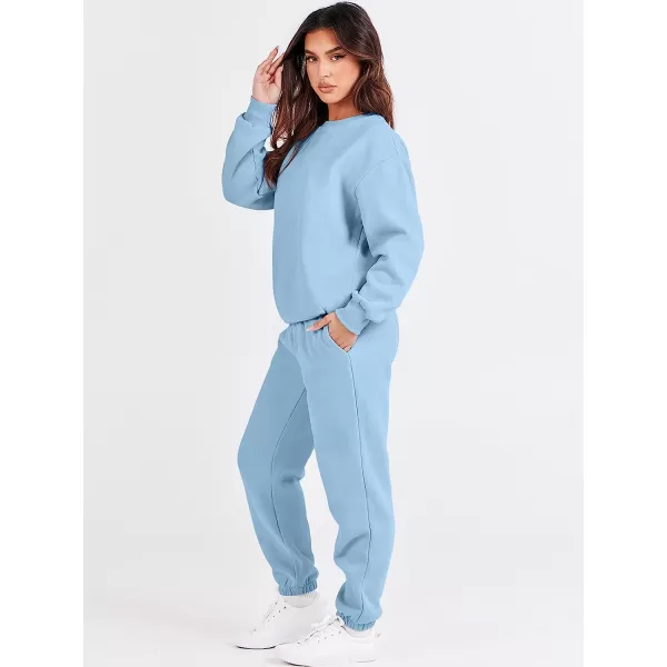 ANRABESS Women's Two Piece Outfits Long Sleeve Crewneck Sweatsuit with Jogger Pants Lounge Sets with Pockets(Sky)