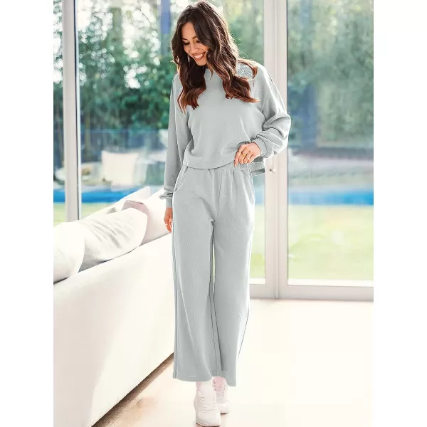 ANRABESS Women’s Two Piece Outfits Long Sleeve Crop Top Wide Leg Pants Knit Sweatsuit Loungewear Sweatsuit Set(Gray)