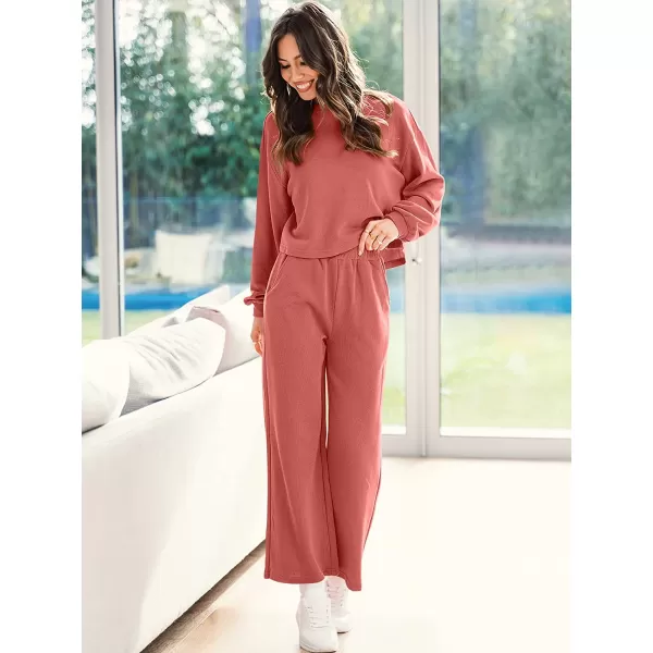 ANRABESS Women’s Two Piece Outfits Long Sleeve Crop Top Wide Leg Pants Knit Sweatsuit Loungewear Sweatsuit Set(Rust)