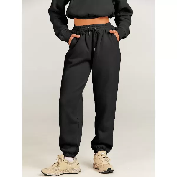 ANRABESS Women's Two Piece Outfits Long Sleeve Half Zip Crop Sweatsuit with Jogger Pants Lounge Sets with Pockets(Black)