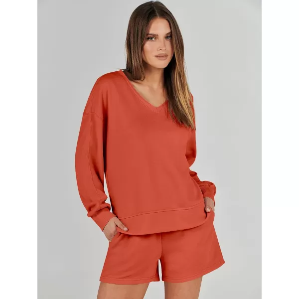 imageANRABESS Womens Two Piece Outfits Sweat Lounge Short Set Long Sleeve Gym Sweatsuit Tracksuit 2024 Spring ClothesOrange