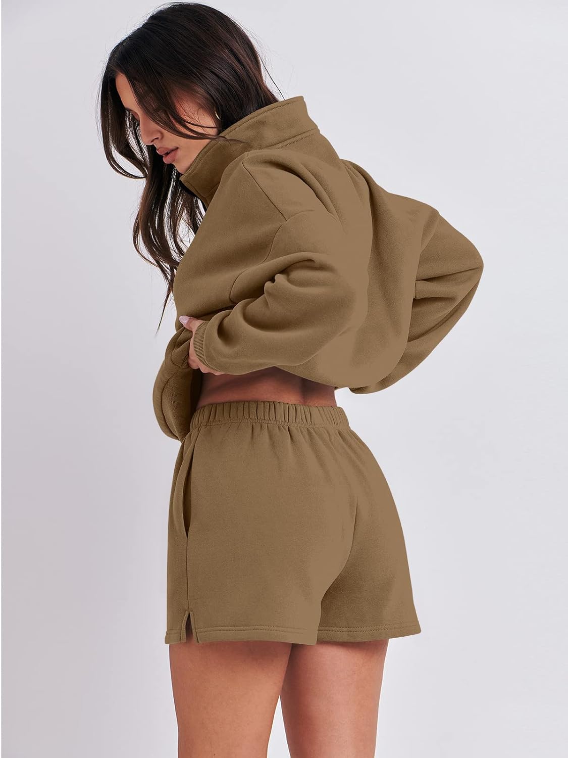 ANRABESS Women's Two Piece Outfits Sweat Lounge Short Set Long Sleeve Gym Sweatsuit Tracksuit 2024 Spring Fashion Clothes(09-brown)