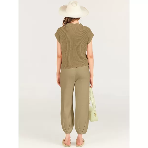 imageANRABESS Womens Two Piece Outfits Sweater Sets Knit Pullover Tops and High Waisted Pants Tracksuit Lounge SetsBrown