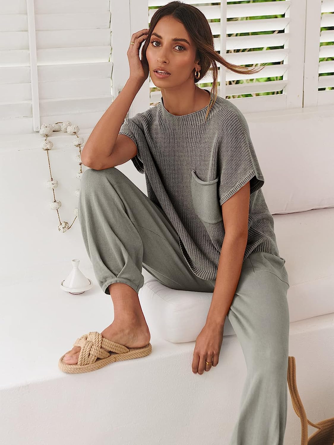 Comfortable fabric – Made with a super-soft knit fabric, our Two Piece Outfit is the perfect choice for a cozy instant outfit, featuring a slouchy, relaxed fit with wide-leg pants.