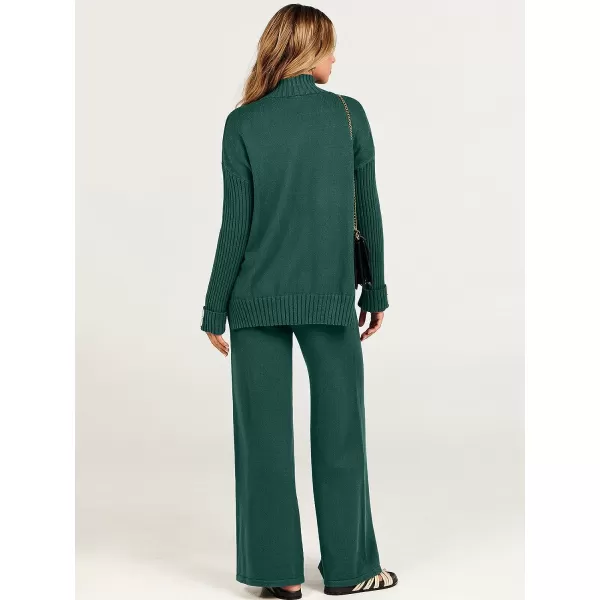 imageANRABESS Womens Two Piece Outfits Sweater Sets Long Sleeve Knit Pullover and Wide Leg Pants Lounge SetsOpal Green