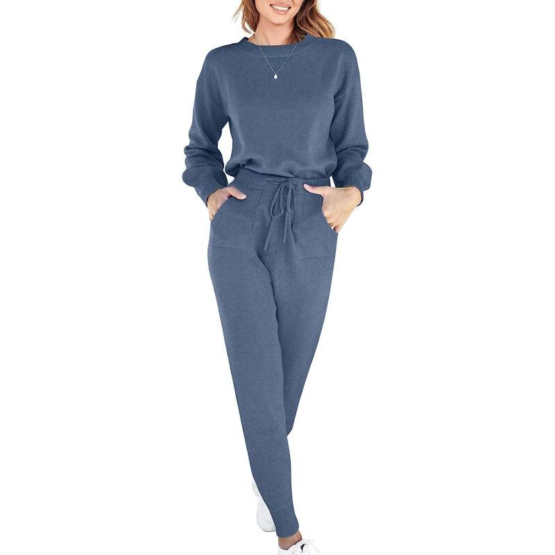 STYLE: Two-piece set/long sleeve pullover tops/crew-neck/solid color/drawstring high waist pants/beam foot