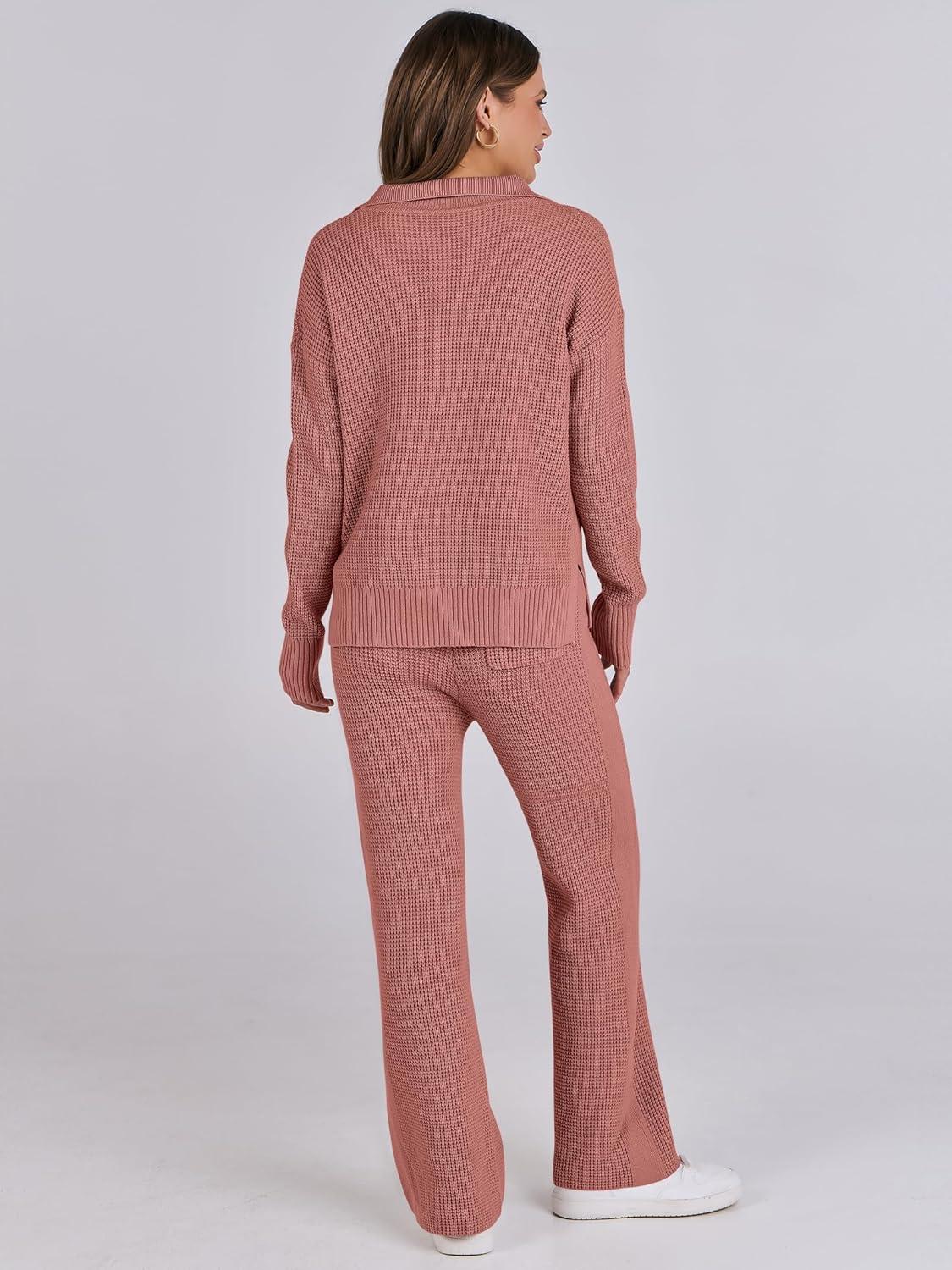 Be the first to review “ANRABESS Womens Two Piece Outfits Sweater Sets Waffle Knit Pullover Wide Leg Pants Tracksuit Sweatsuits Matching Lounge Set(Rust)”