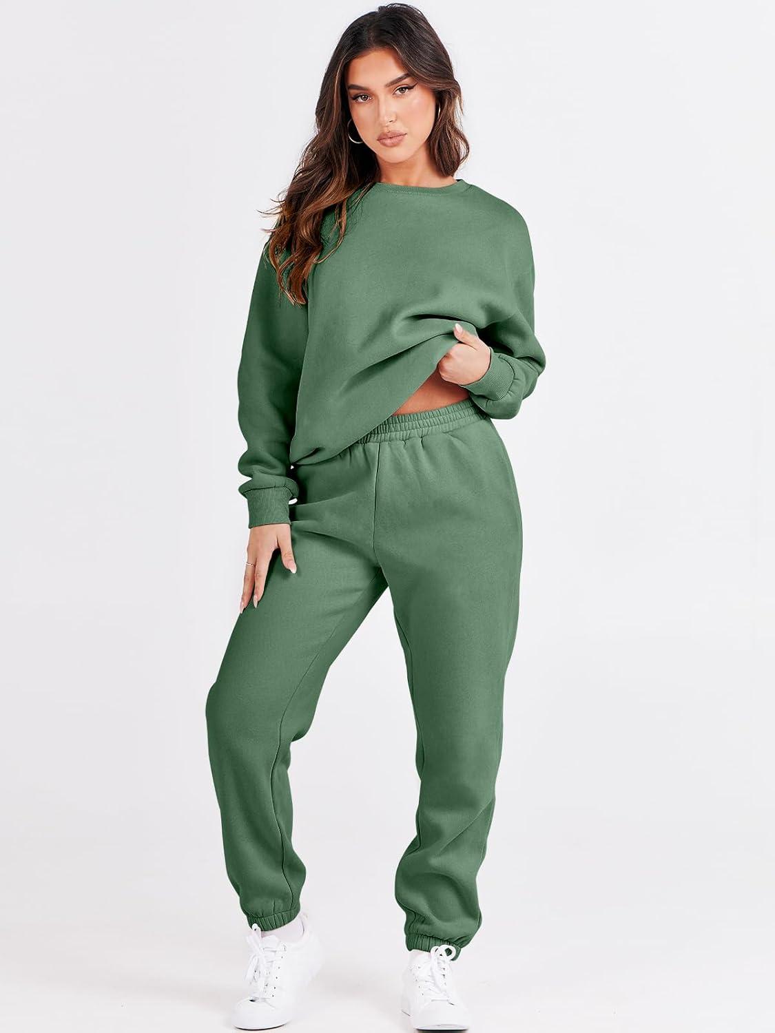 ANRABESS Women’s Two Piece Outfits Sweatsuit Lounge Set Long Sleeve Crewneck Sweatshirt Jogger Pants Tracksuit 2025 Fall Sets(Green)