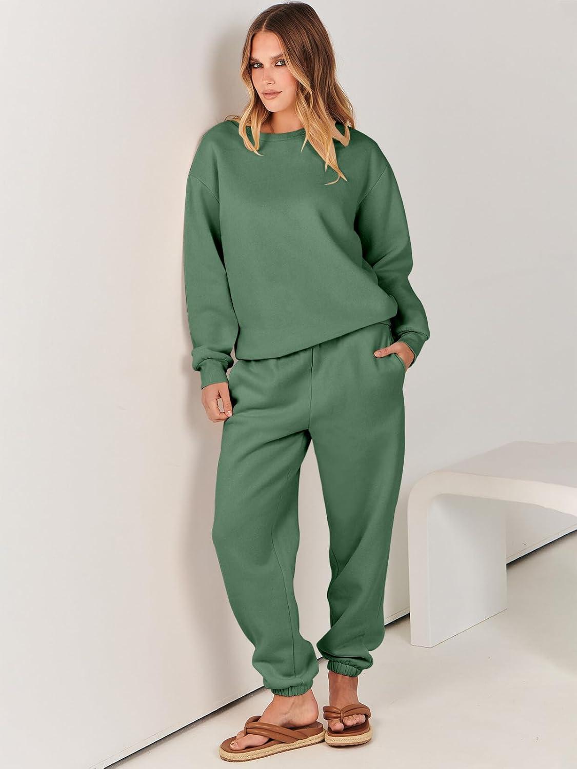 imageANRABESS Womens Two Piece Outfits Sweatsuit Lounge Set Long Sleeve Crewneck Sweatshirt Jogger Pants Tracksuit 2025 Fall SetsGreen
