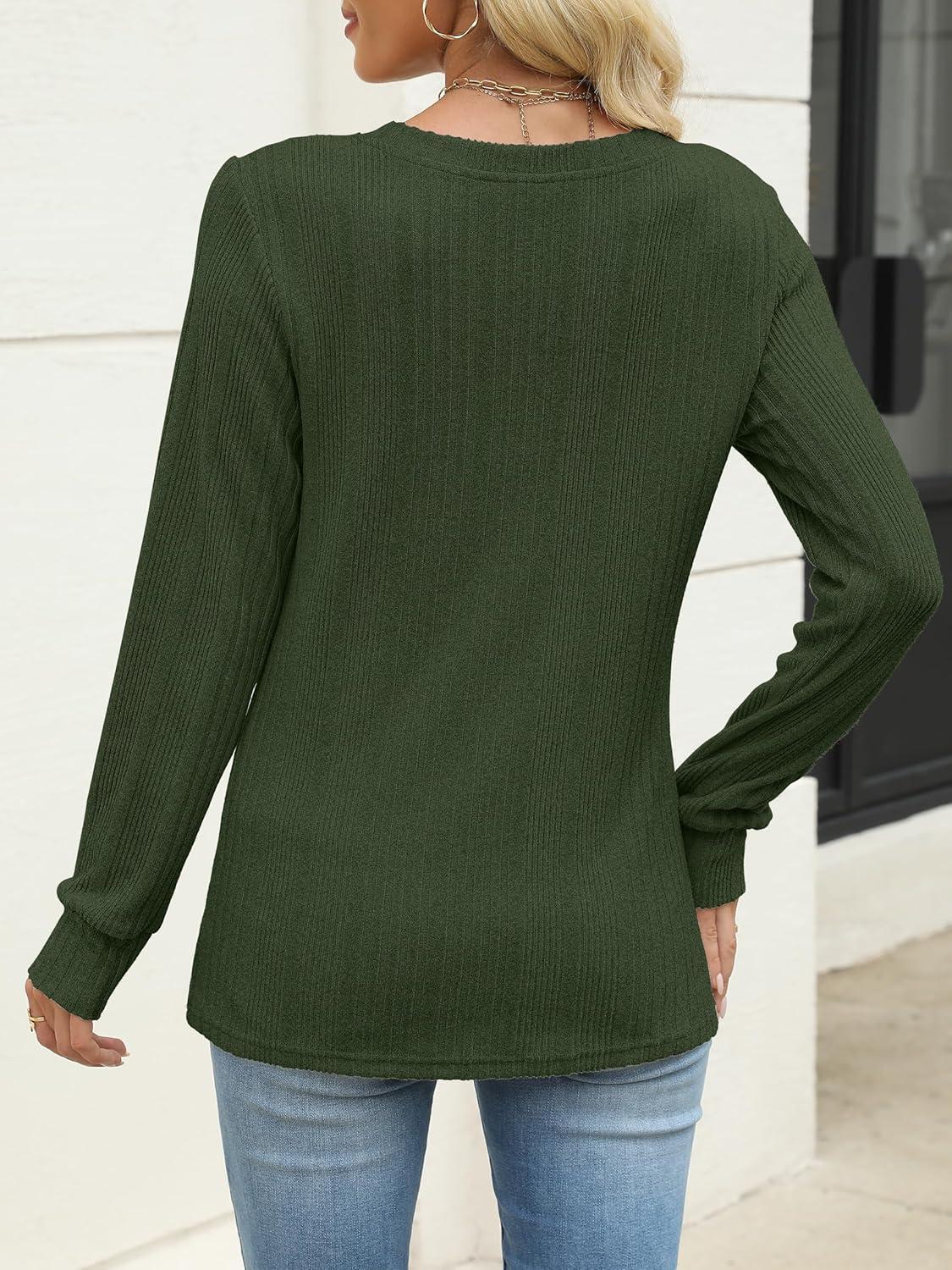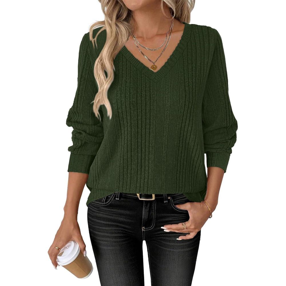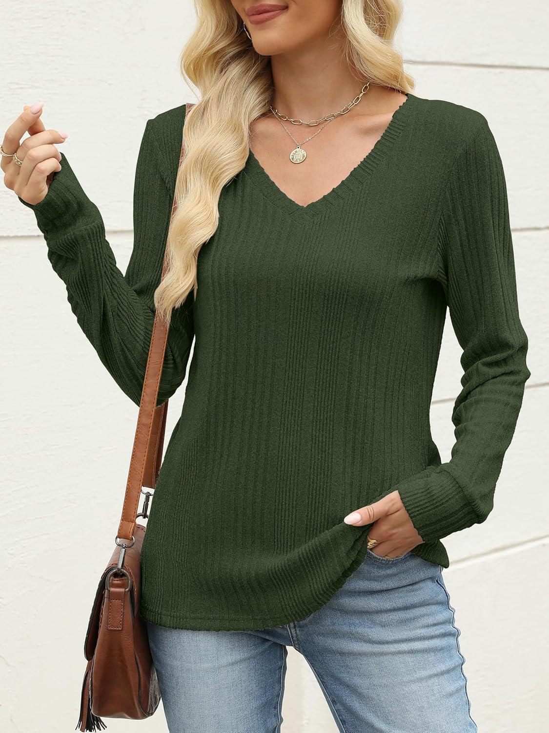ANRABESS Womens V Neck Sweaters 2025 Fall Long Sleeve Shirts Lightweight Ribbed Knit Basic Casual Office Work Tunic Tops(Green)