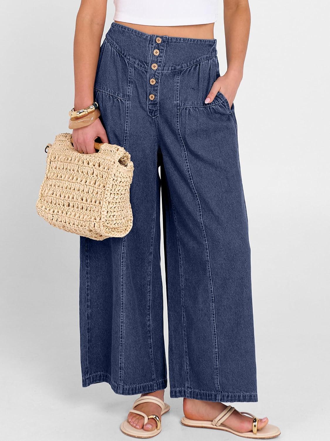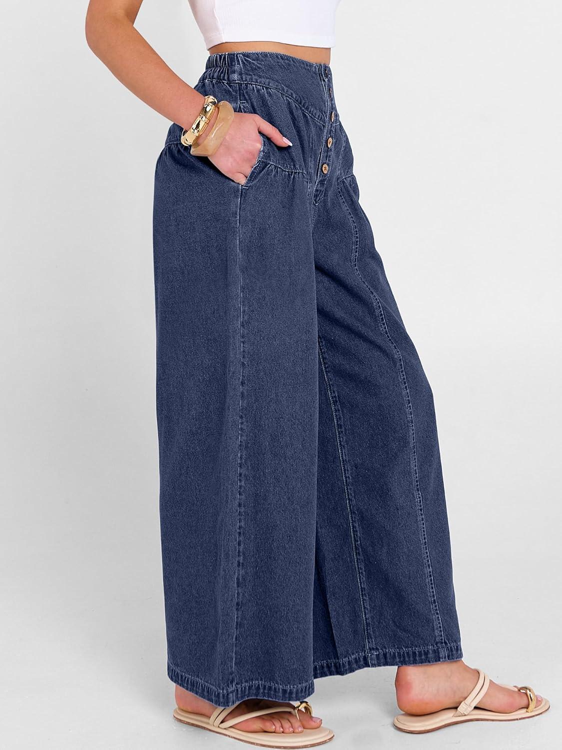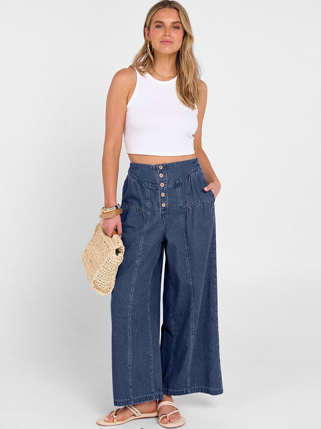 ANRABESS Womens Wide Leg Barrel Jeans 2026 Spring Baggy High Waisted Trendy Cropped Denim Pants with Pockets(Deep Blue)