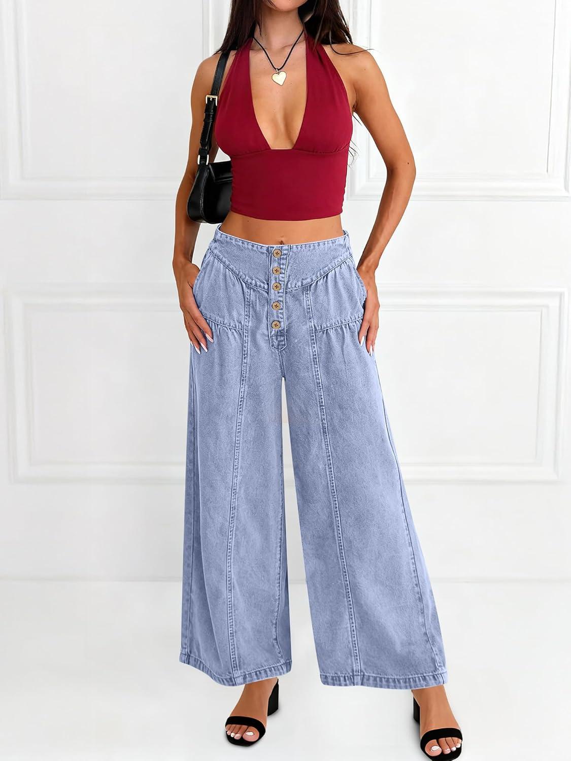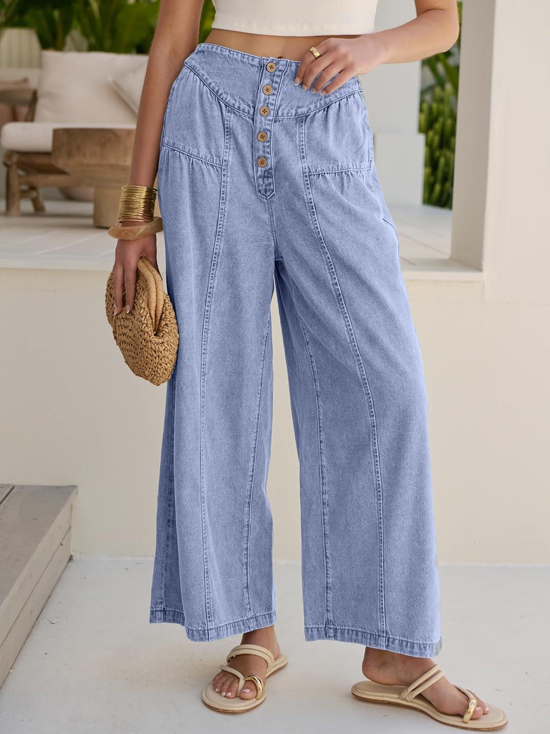 ANRABESS Womens Wide Leg Barrel Jeans 2026 Spring Baggy High Waisted Trendy Cropped Denim Pants with Pockets(Water Blue)
