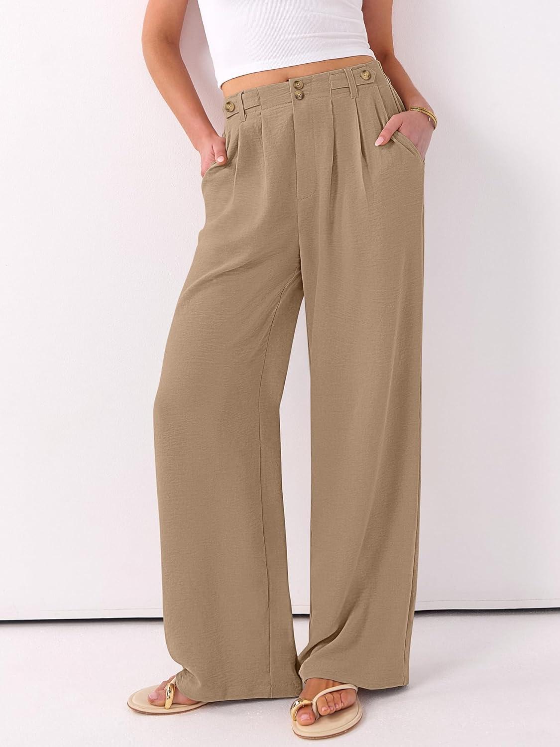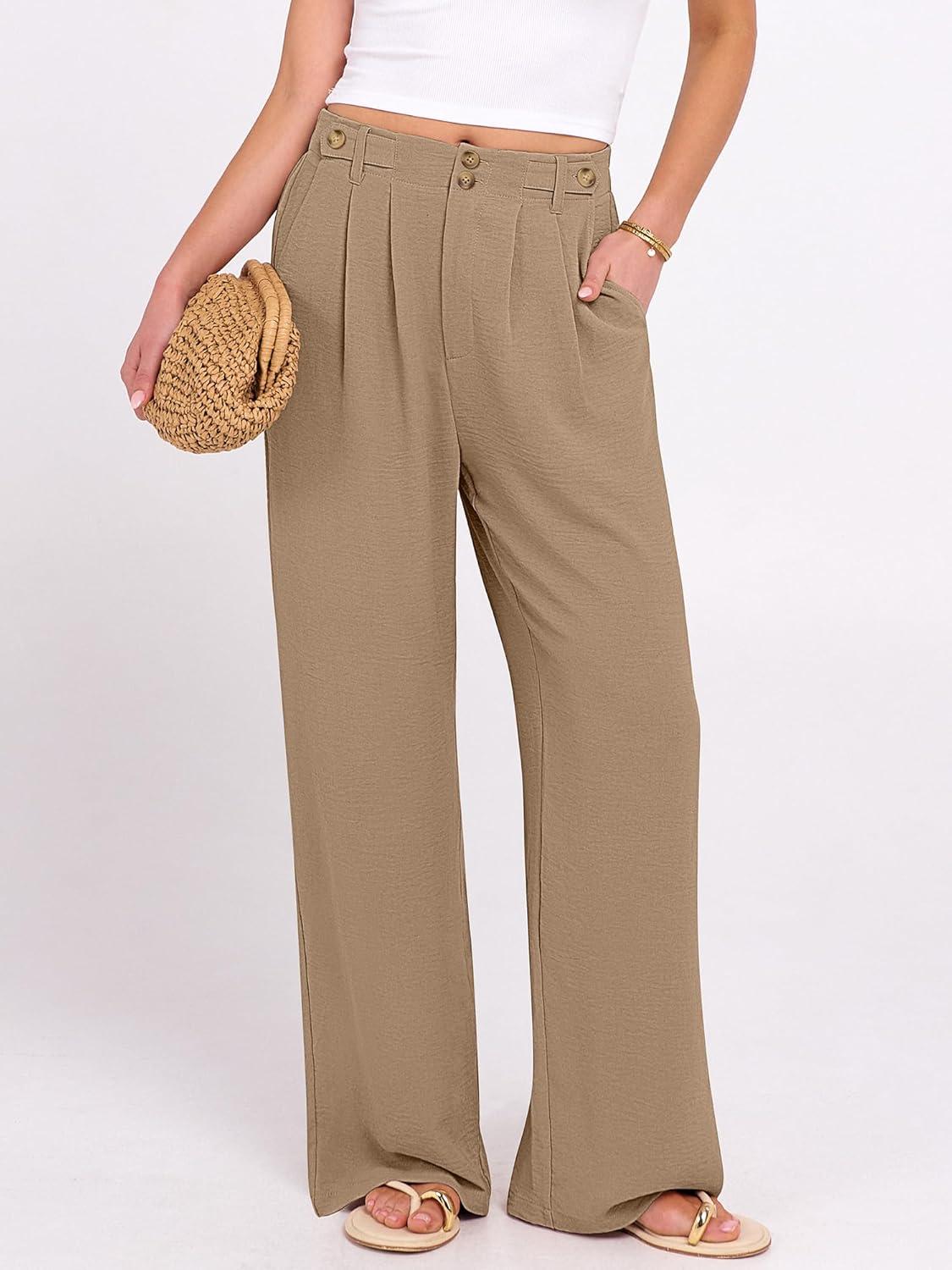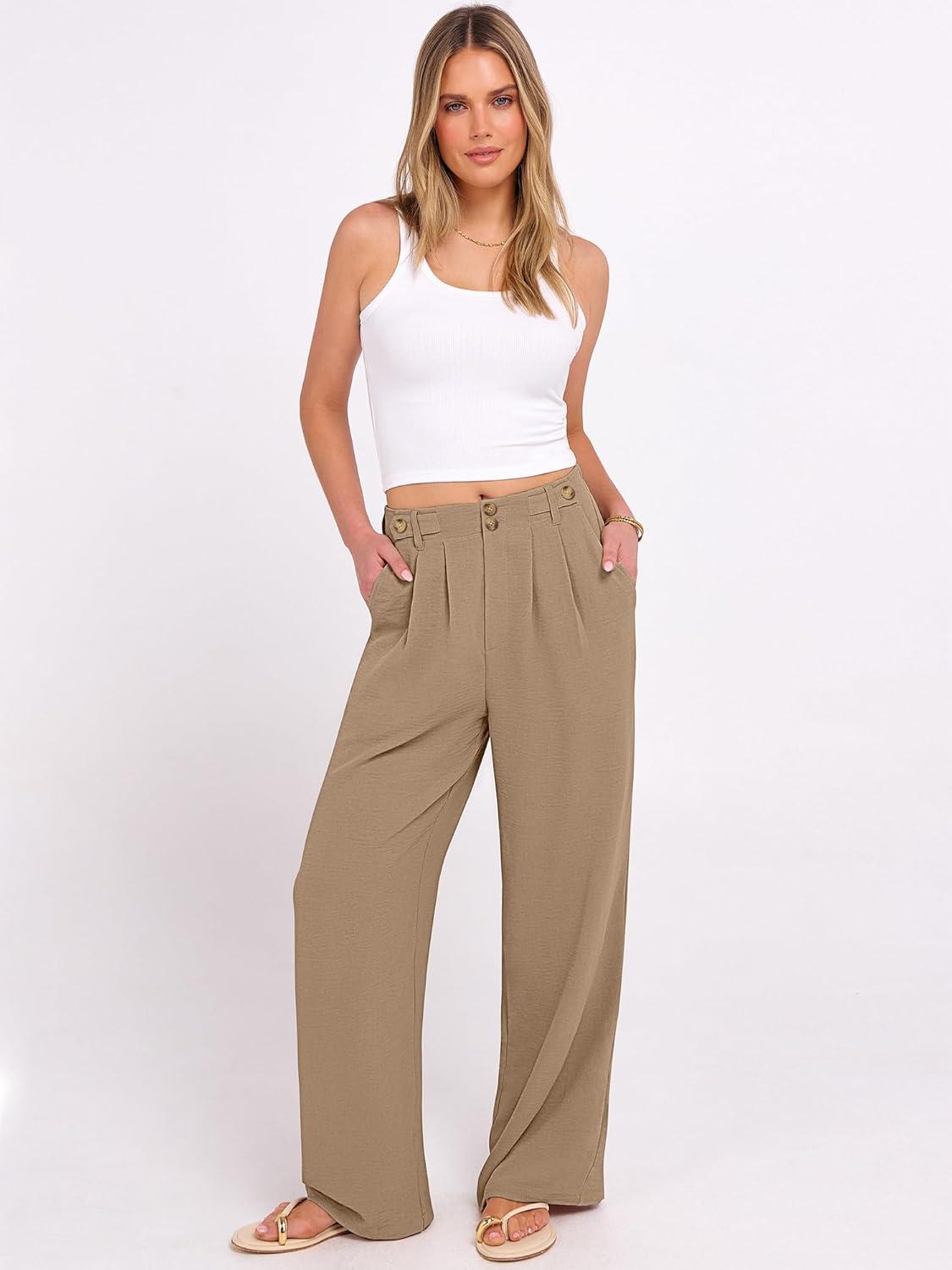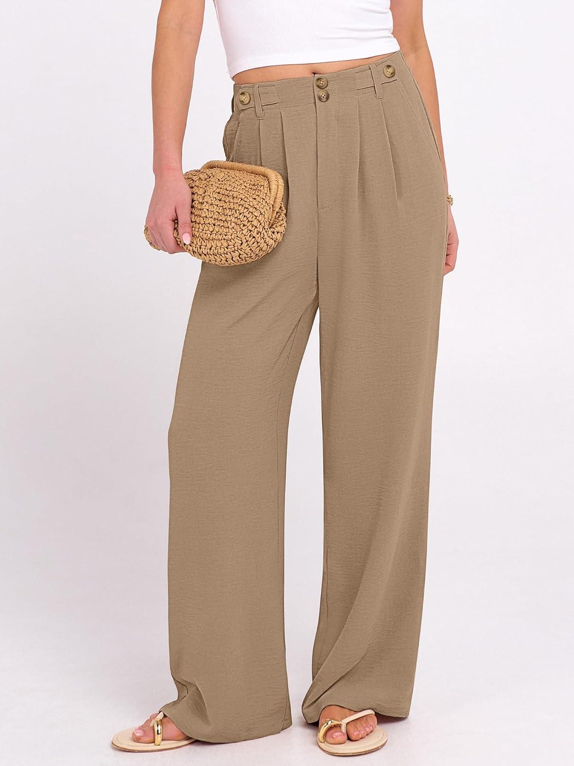ANRABESS Women's Wide Leg Dress Pants 2026 High Waisted Button Pleated Palazzo Business Casual Pants Office Work Trousers