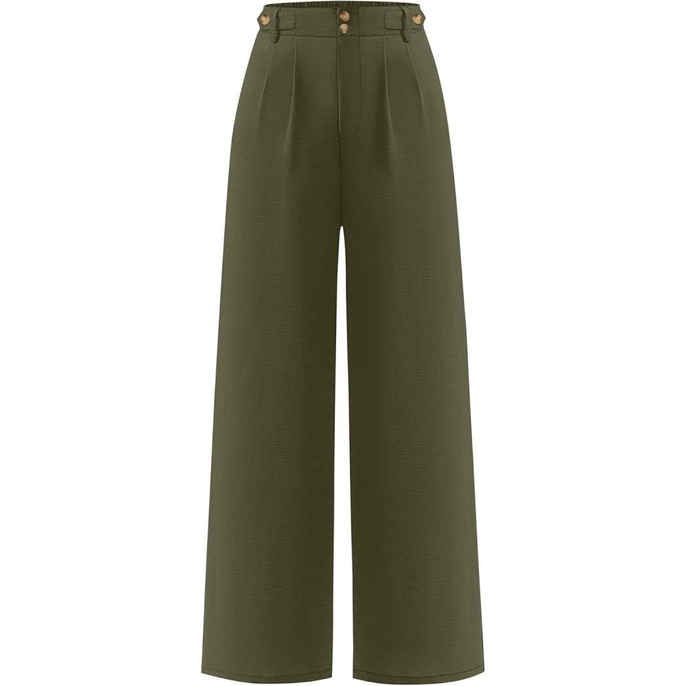 ANRABESS Women's Wide Leg Dress Pants 2026 High Waisted Button Pleated Palazzo Work Pants Trousers Business Casual Outfits