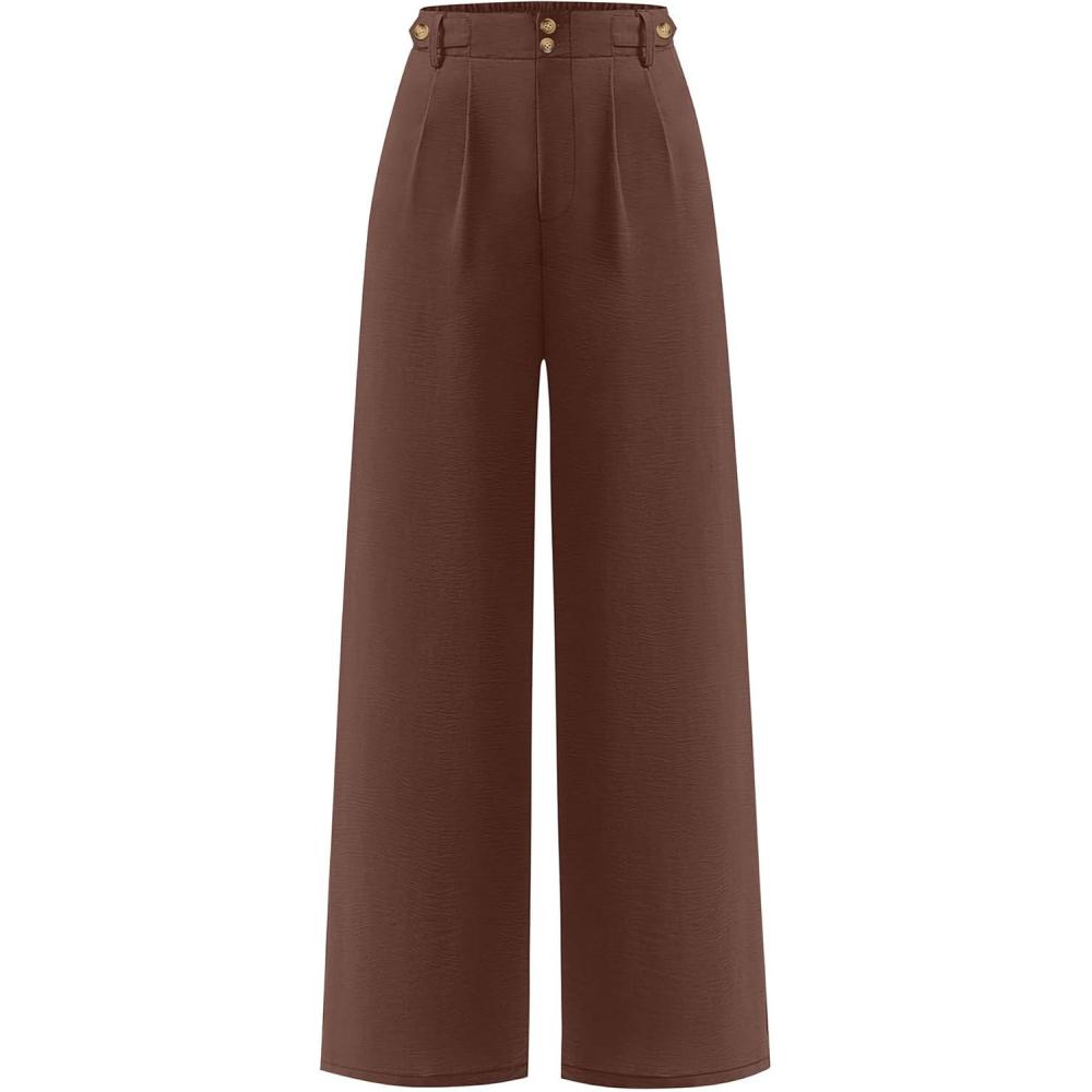 ANRABESS Women's Wide Leg Dress Pants 2026 High Waisted Button Pleated Palazzo Work Pants Trousers Business Casual Outfits(Coffee)