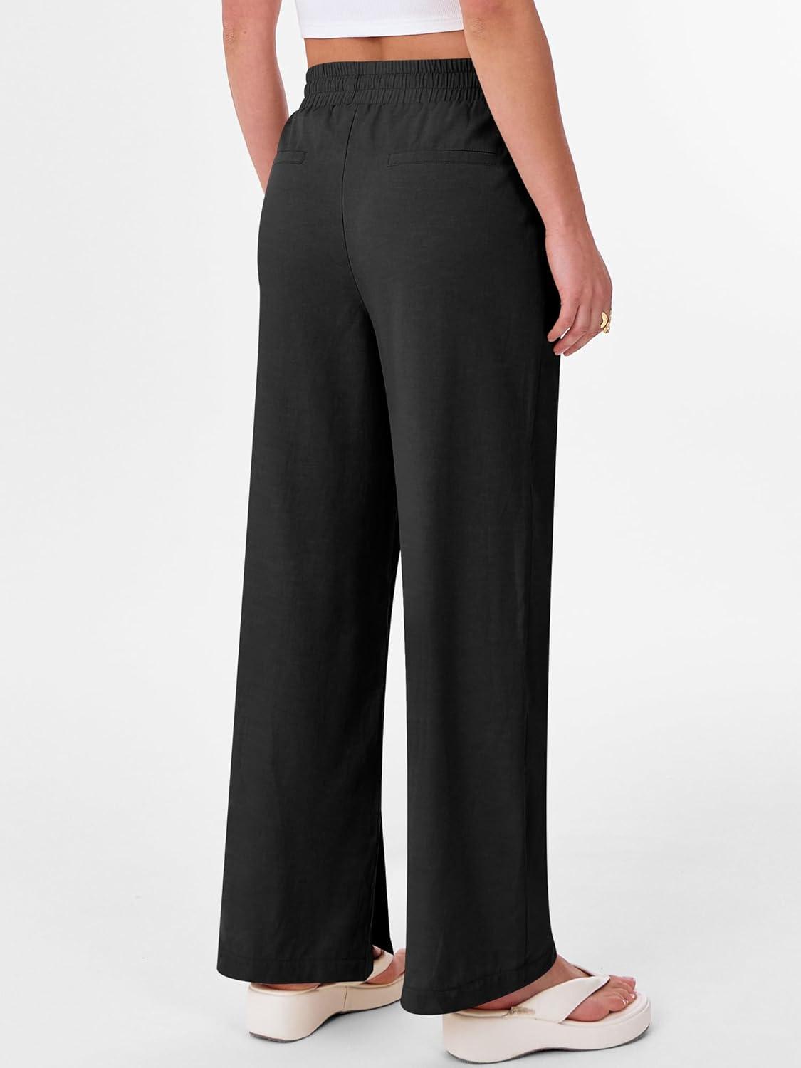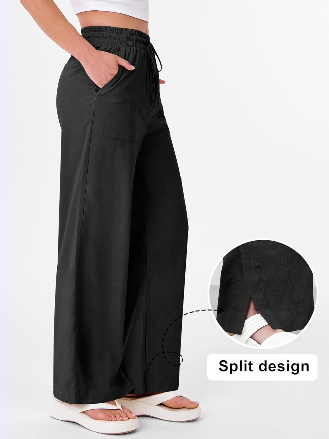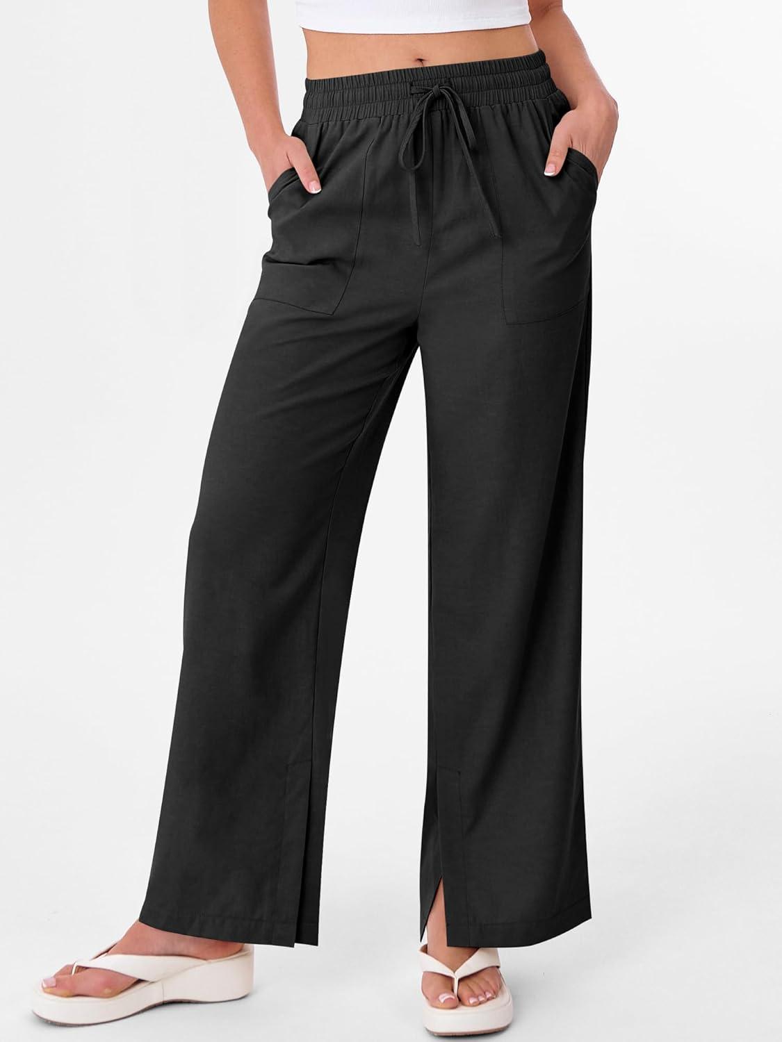 ANRABESS Womens Wide Leg Palazzo Pants High Waisted Split Hem Lounge Casual Trousers Drawstring Pant for Beach Vacation(Black)