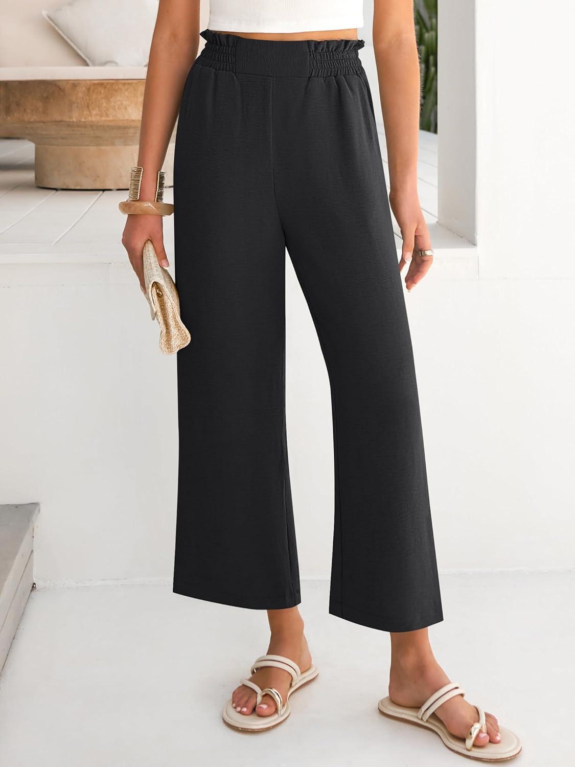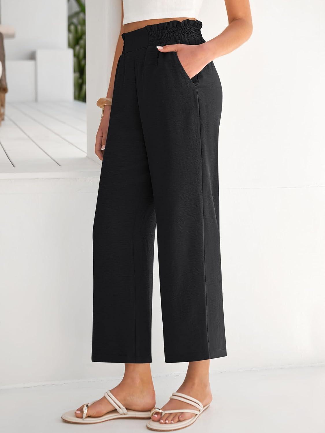 imageANRABESS Womens Wide Leg Palazzo Pants Summer Beach High Waisted Cropped Flowy Pants 2026 Dressy Casual Trousers with PocketsBlack
