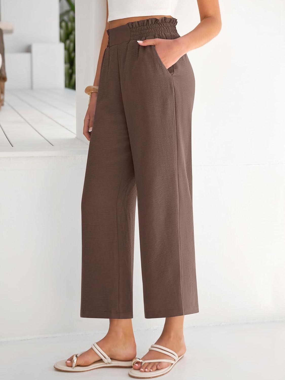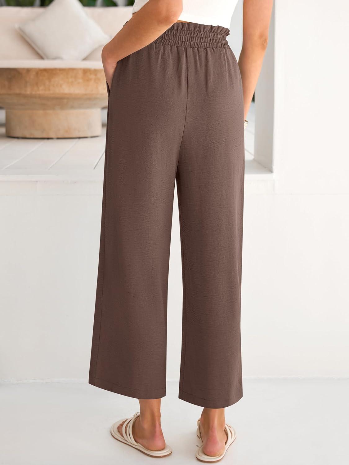 ANRABESS Womens Wide Leg Palazzo Pants Summer Beach High Waisted Cropped Flowy Pants 2026 Work Casual Trousers with Pockets(Brown)