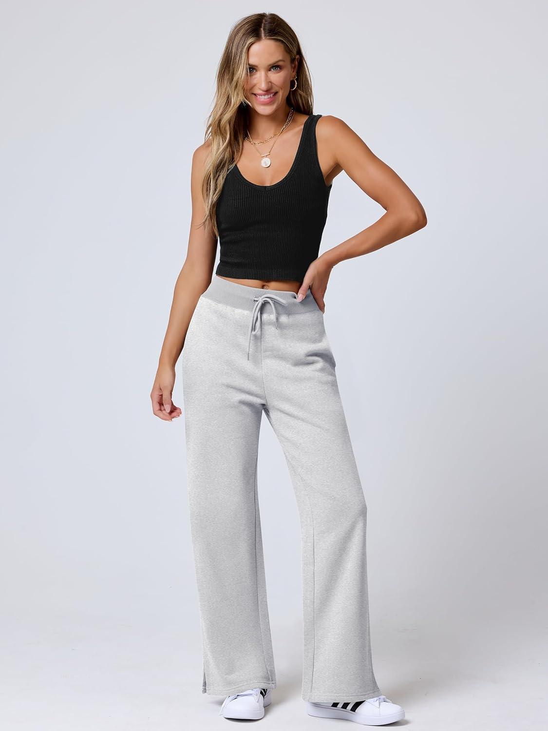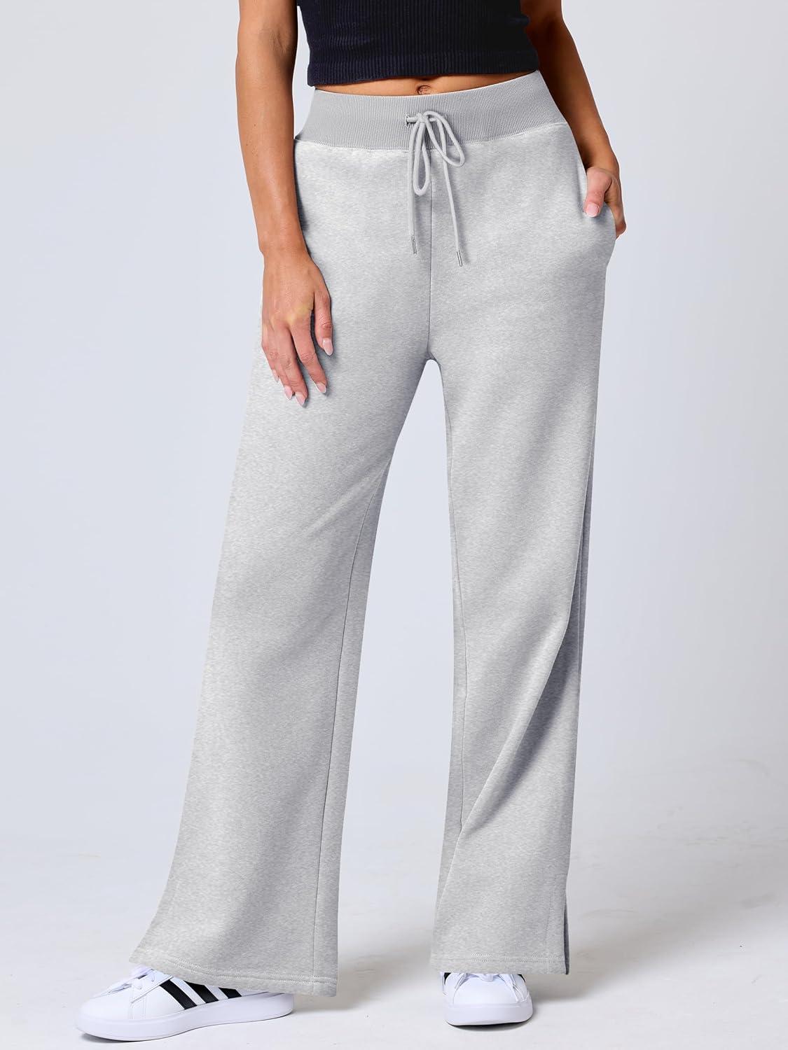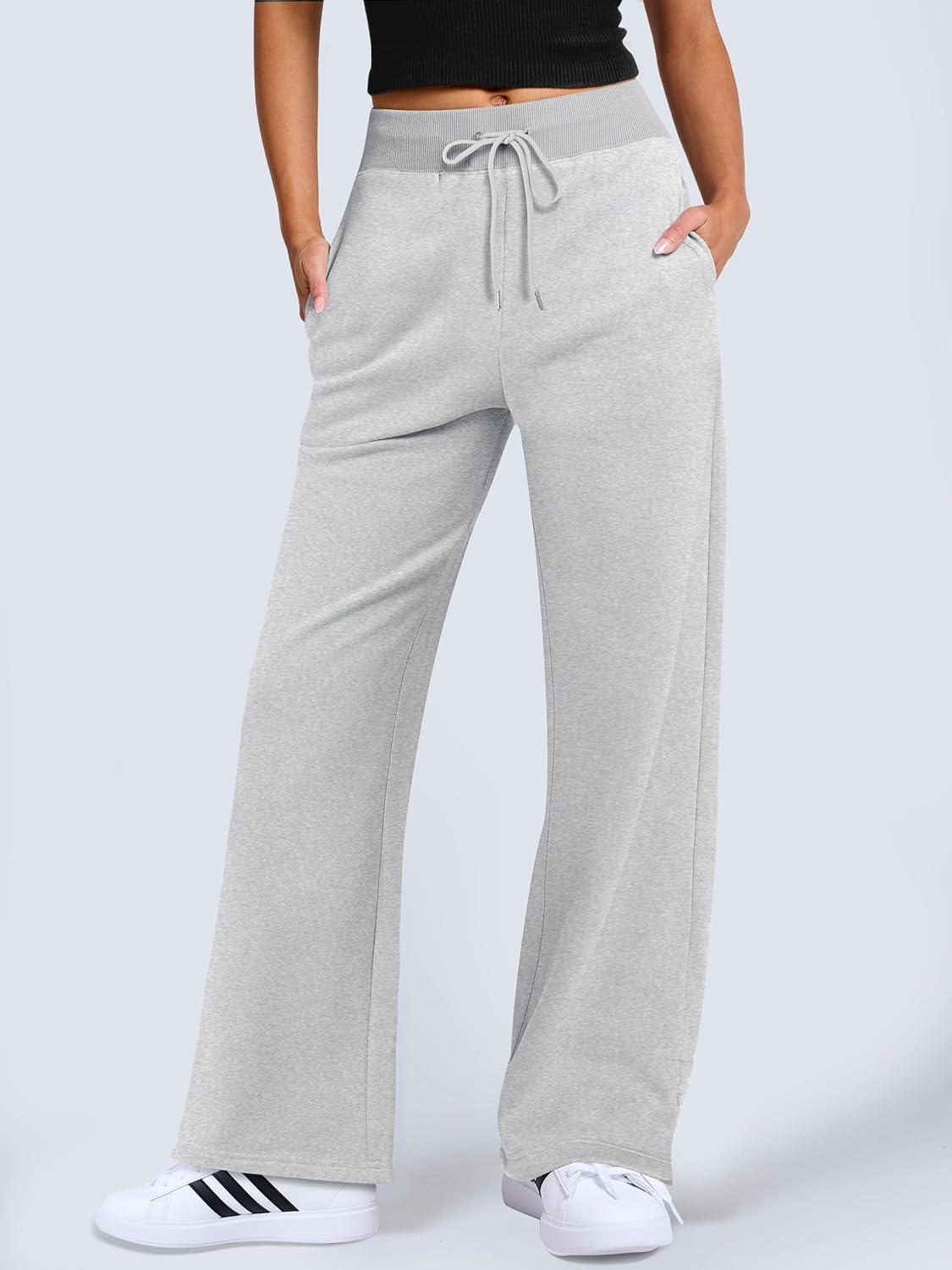 ANRABESS Women’s Wide Leg Pants High Waist Drawstring Sweatpants Joggers with Pockets(Light Grey)