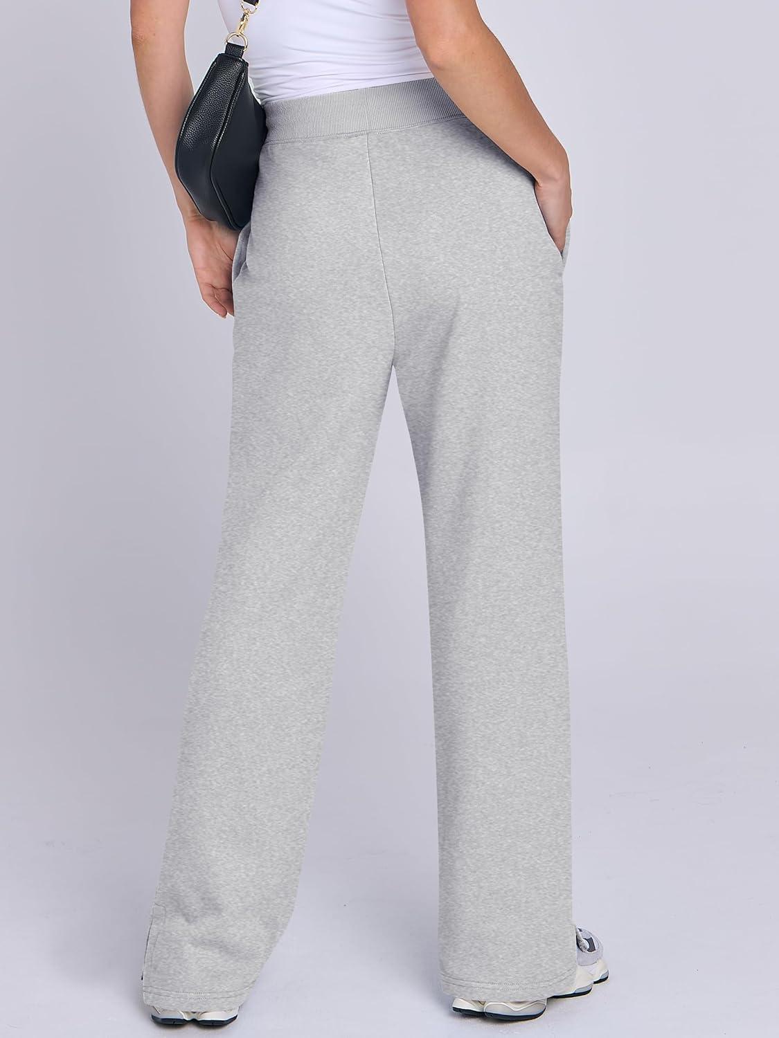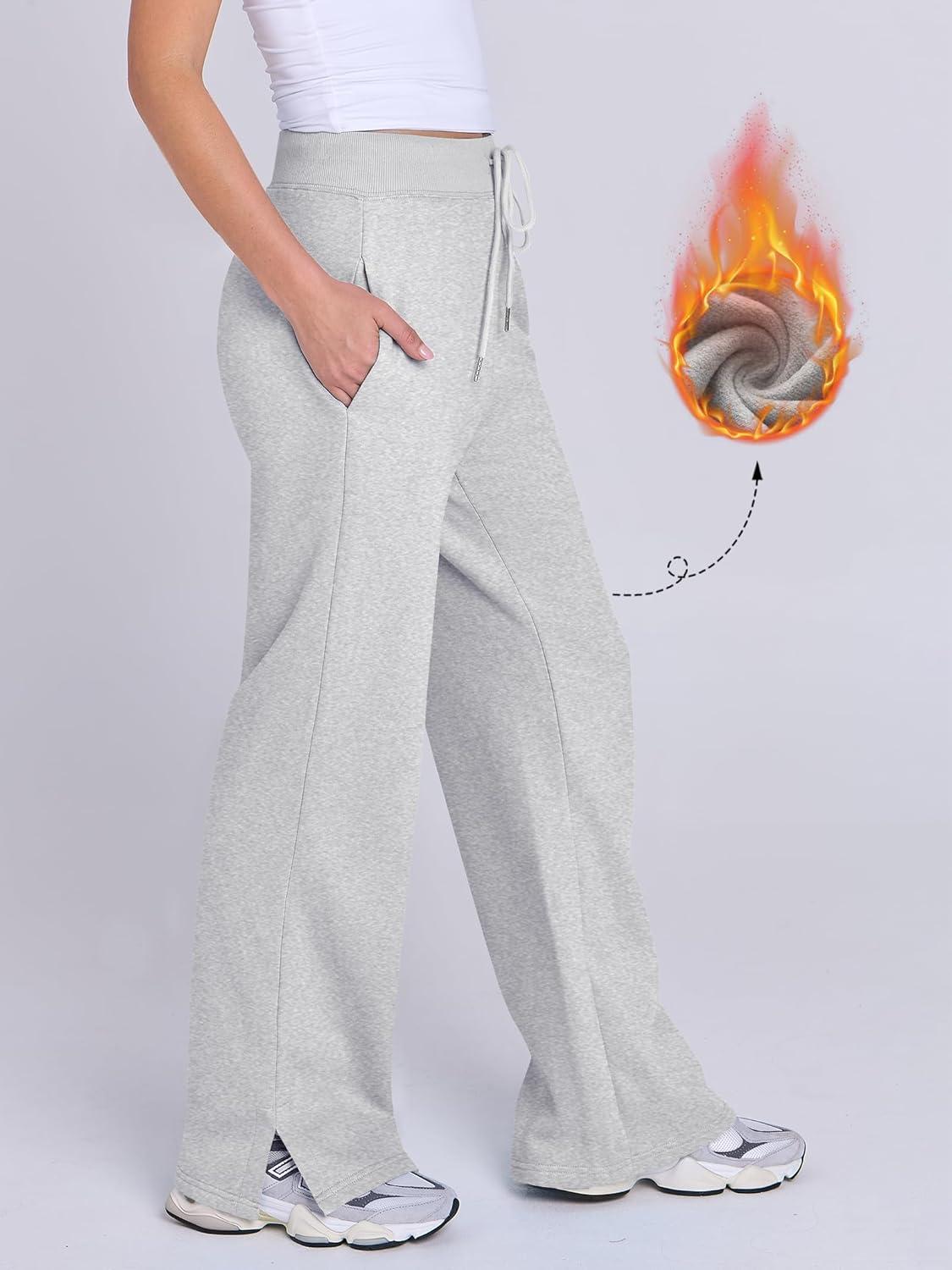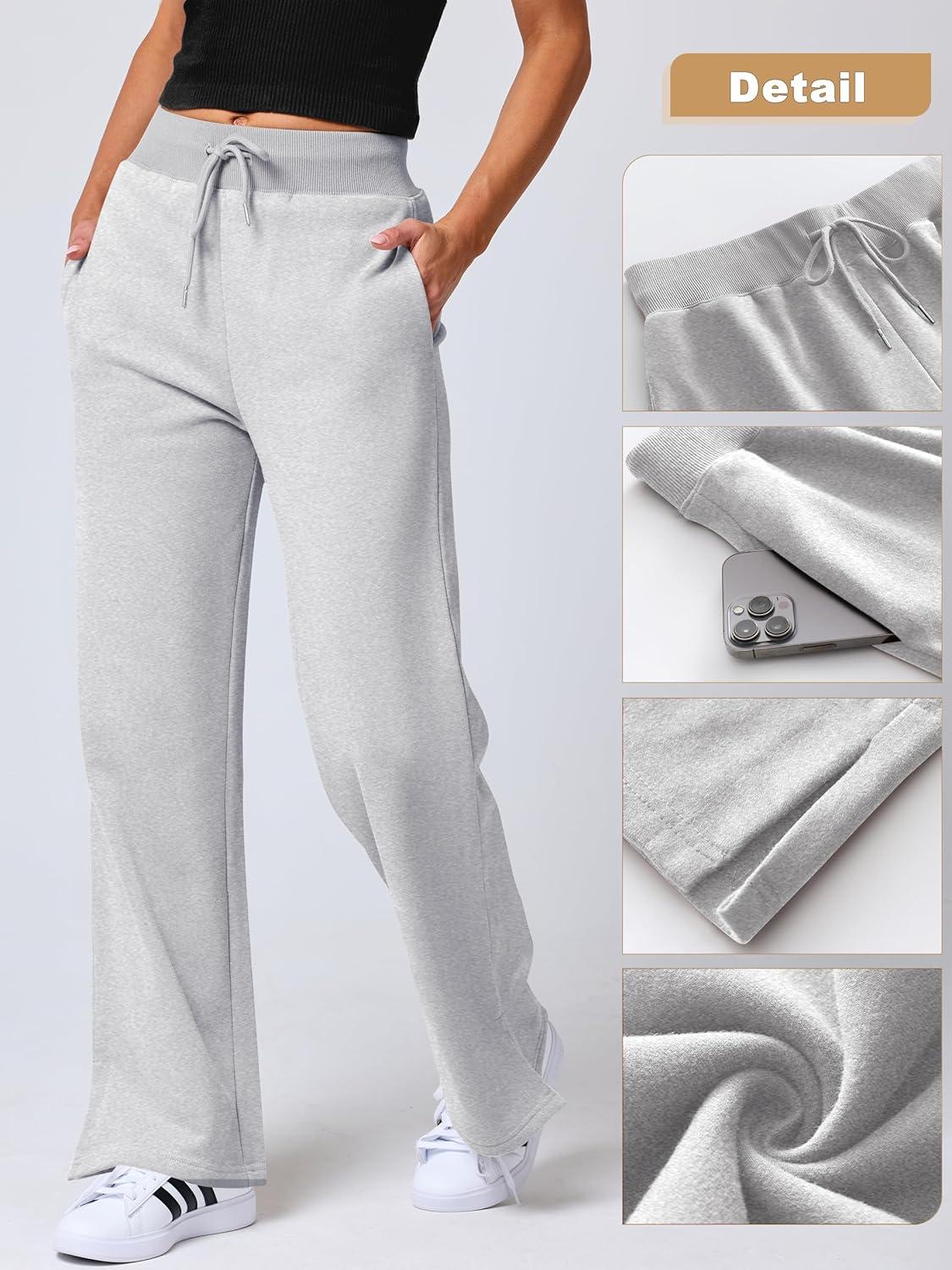 ANRABESS Women’s Wide Leg Pants High Waist Drawstring Sweatpants Joggers with Pockets(Light Grey)