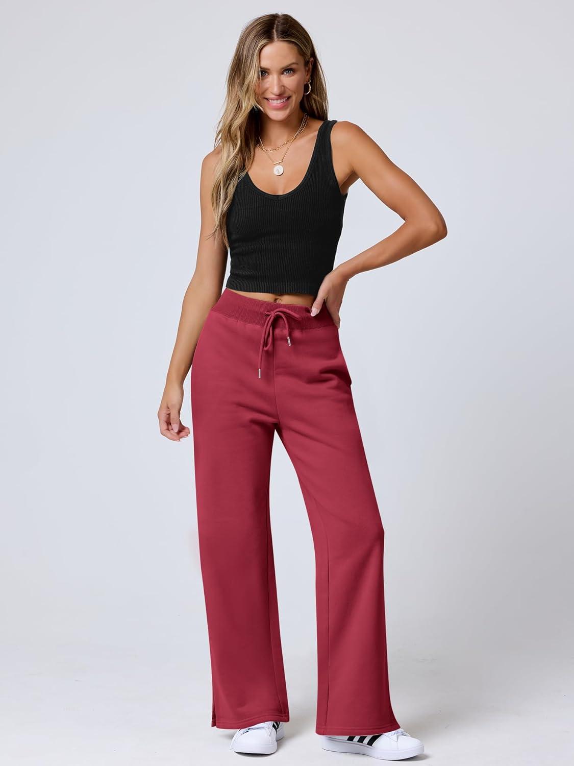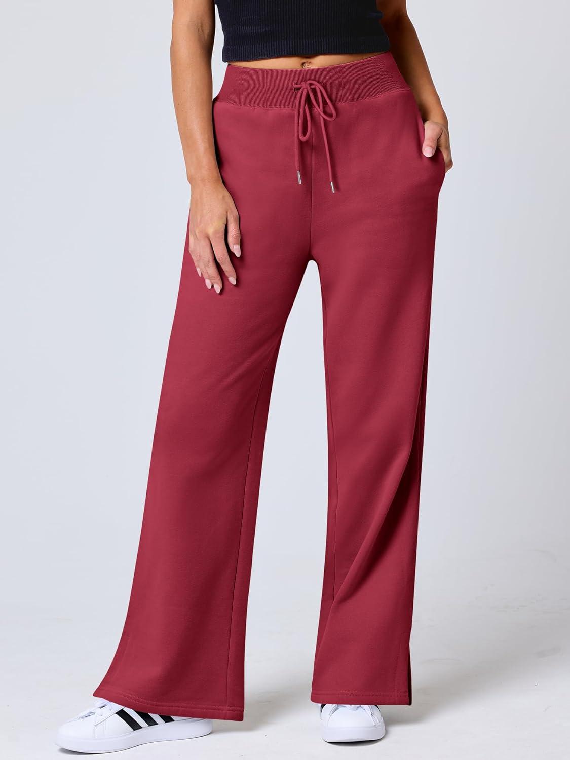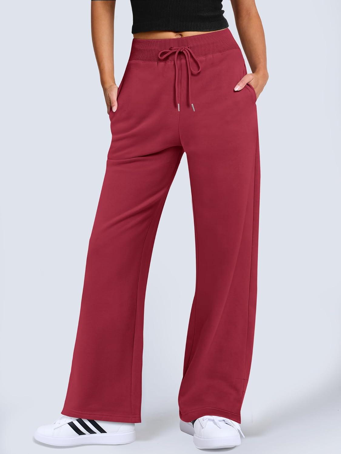 ANRABESS Women’s Wide Leg Pants High Waist Drawstring Sweatpants Joggers with Pockets(Red)