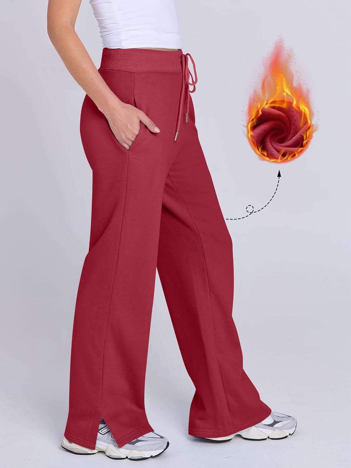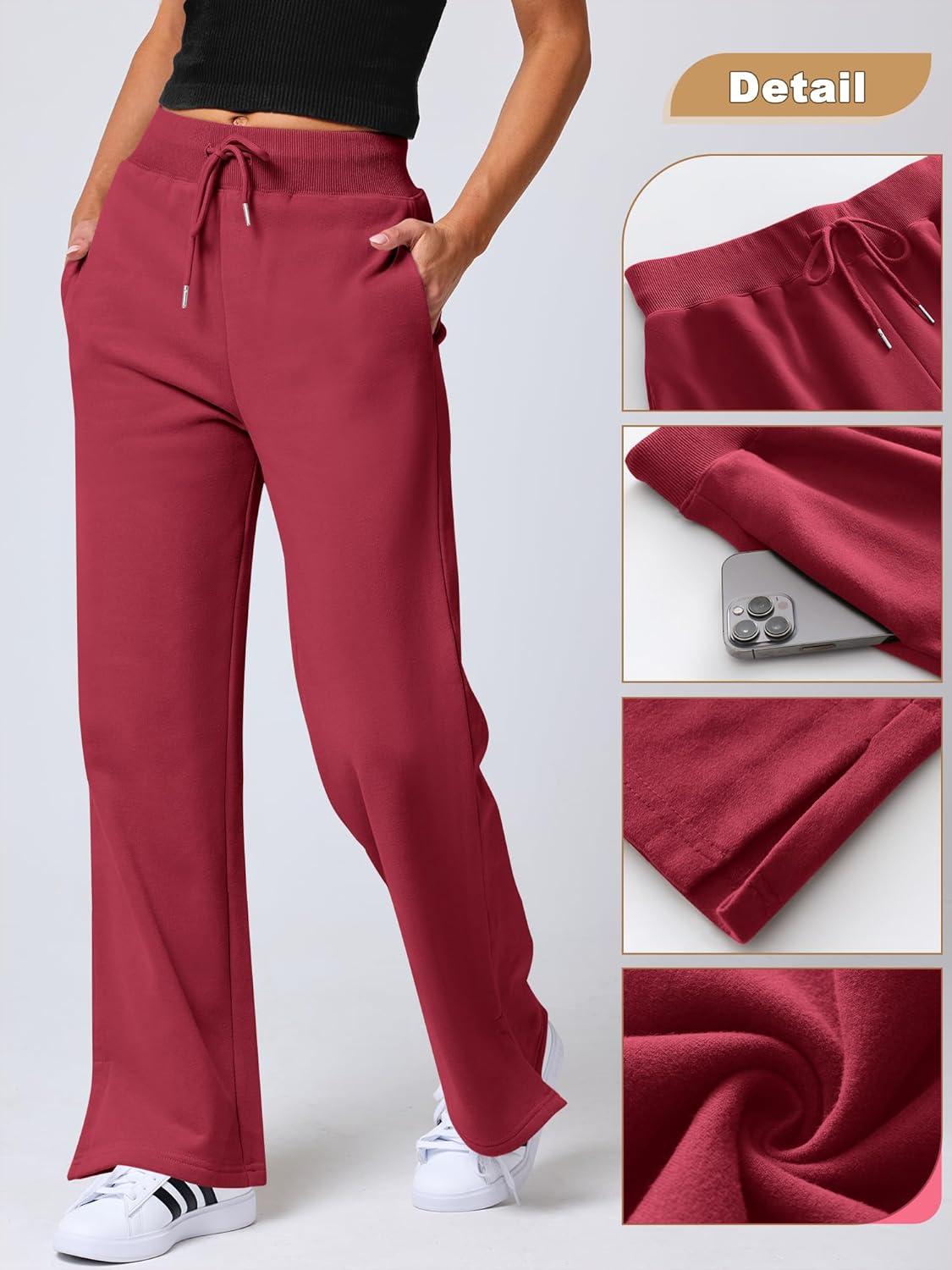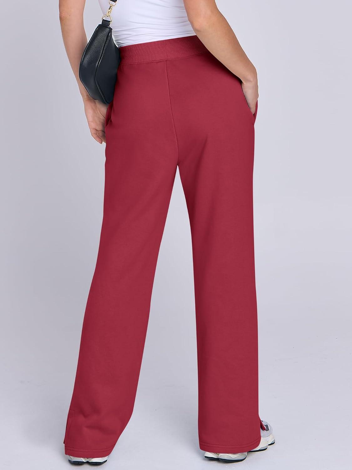 ANRABESS Women’s Wide Leg Pants High Waist Drawstring Sweatpants Joggers with Pockets(Red)