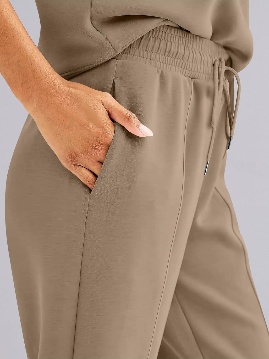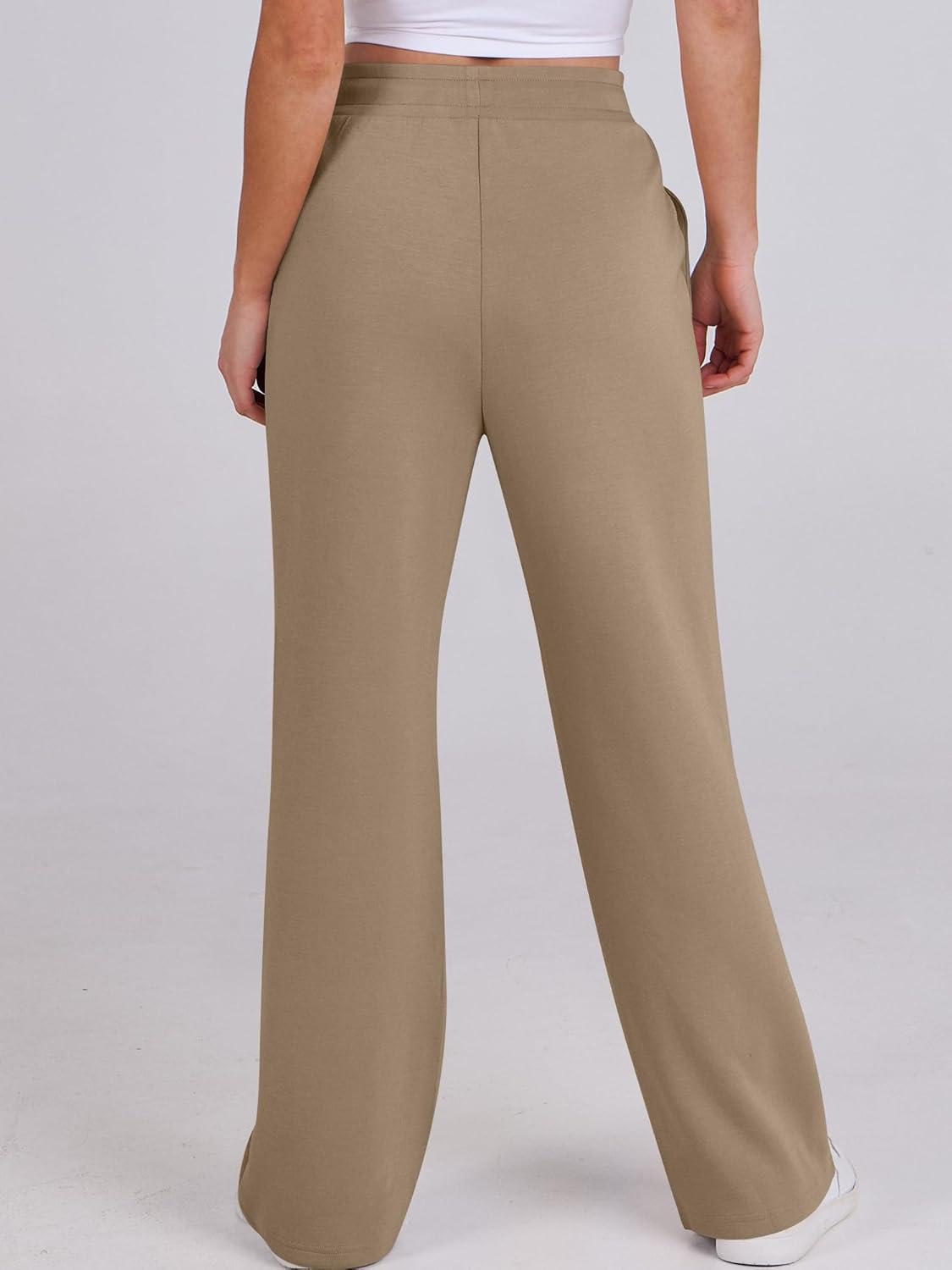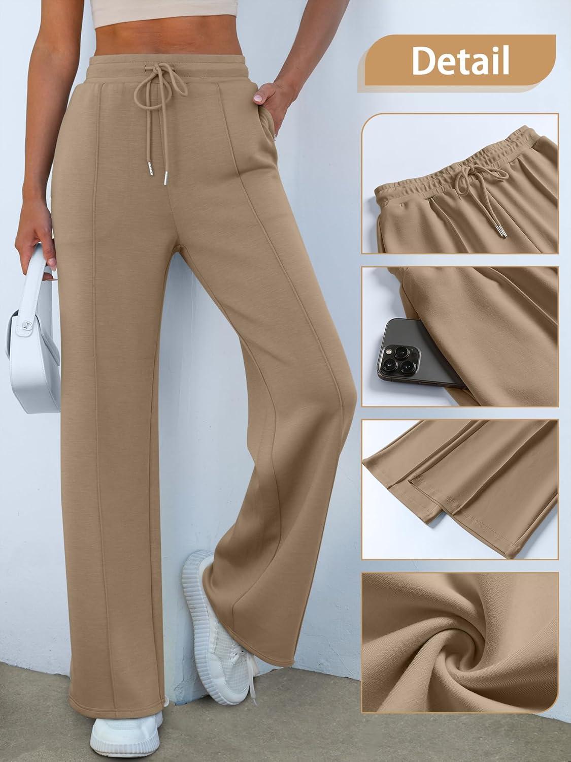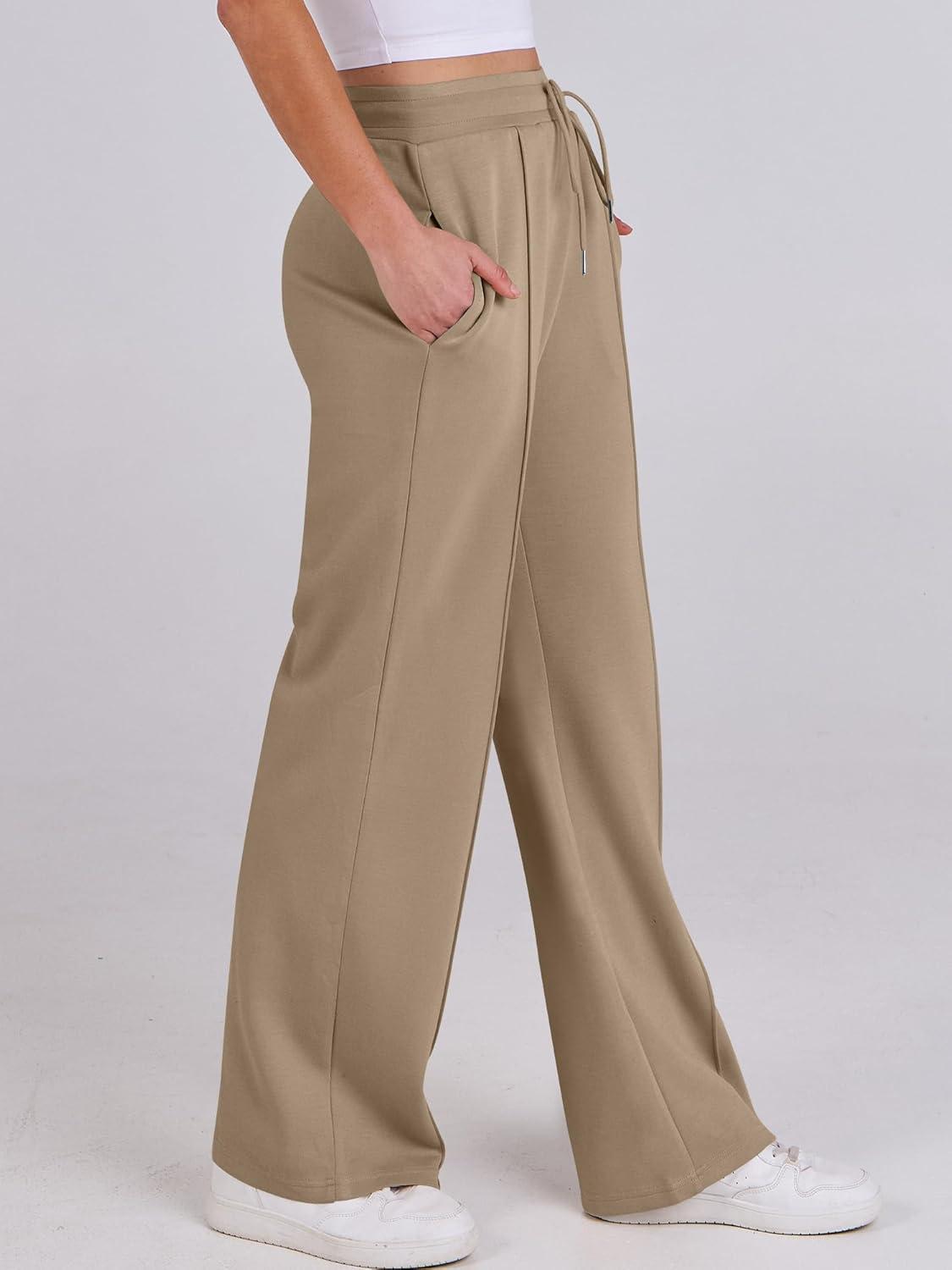 ANRABESS Women's Wide Leg Sweatpants High Waist Baggy Flared Pants Drawstring Athletic Joggers Sweat Pants(Khaki)
