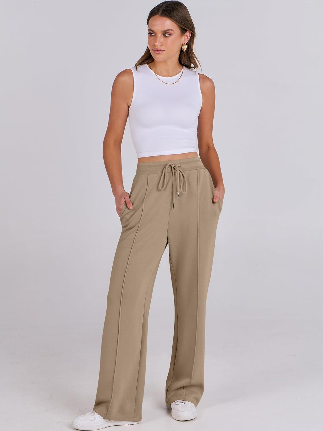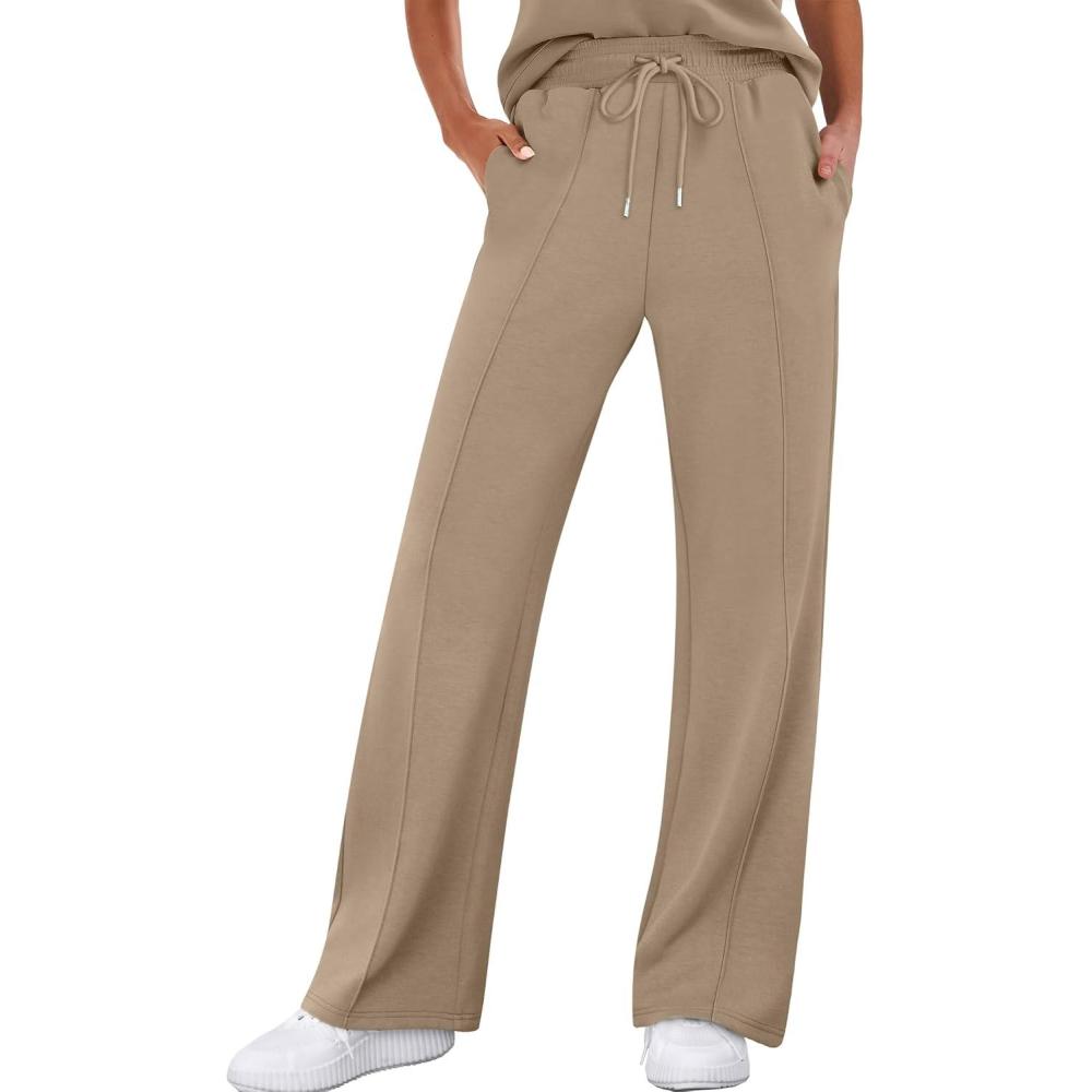 ANRABESS Women’s Wide Leg Sweatpants High Waist Baggy Flared Pants Drawstring Athletic Joggers Sweat Pants(Khaki)
